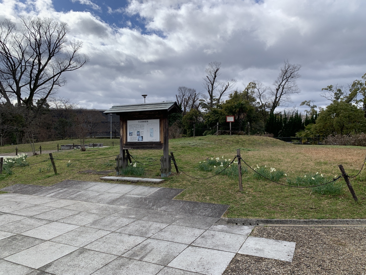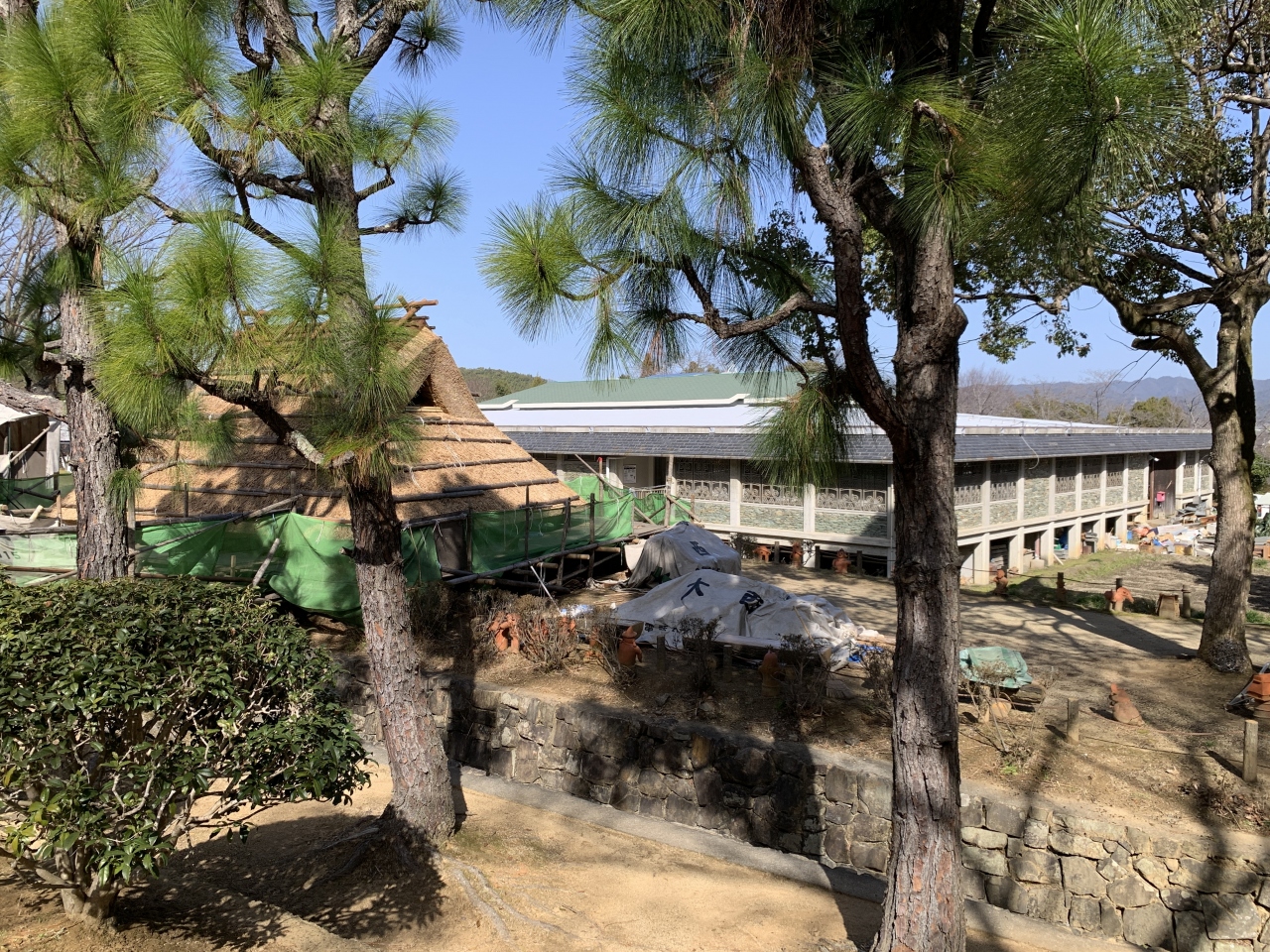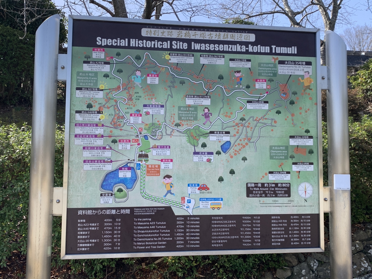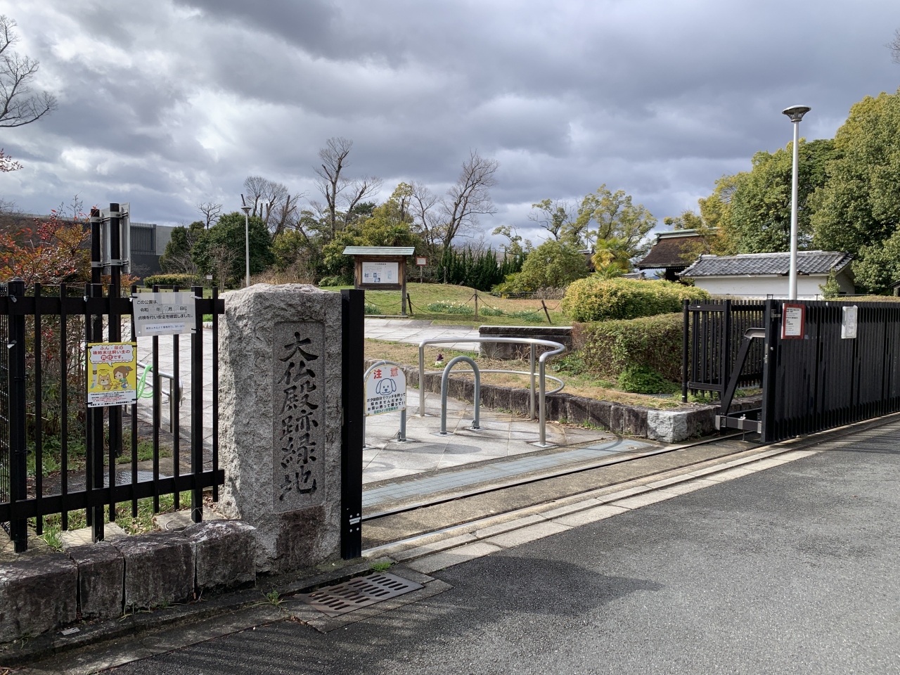 古墳群や移築された民家、万葉の植物園などもある広い史跡公園です。