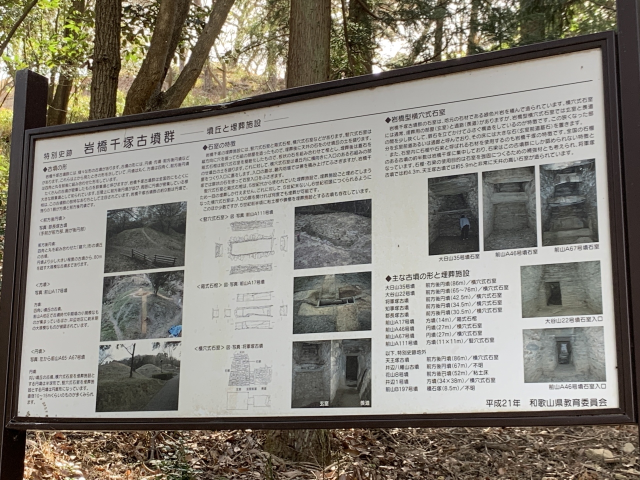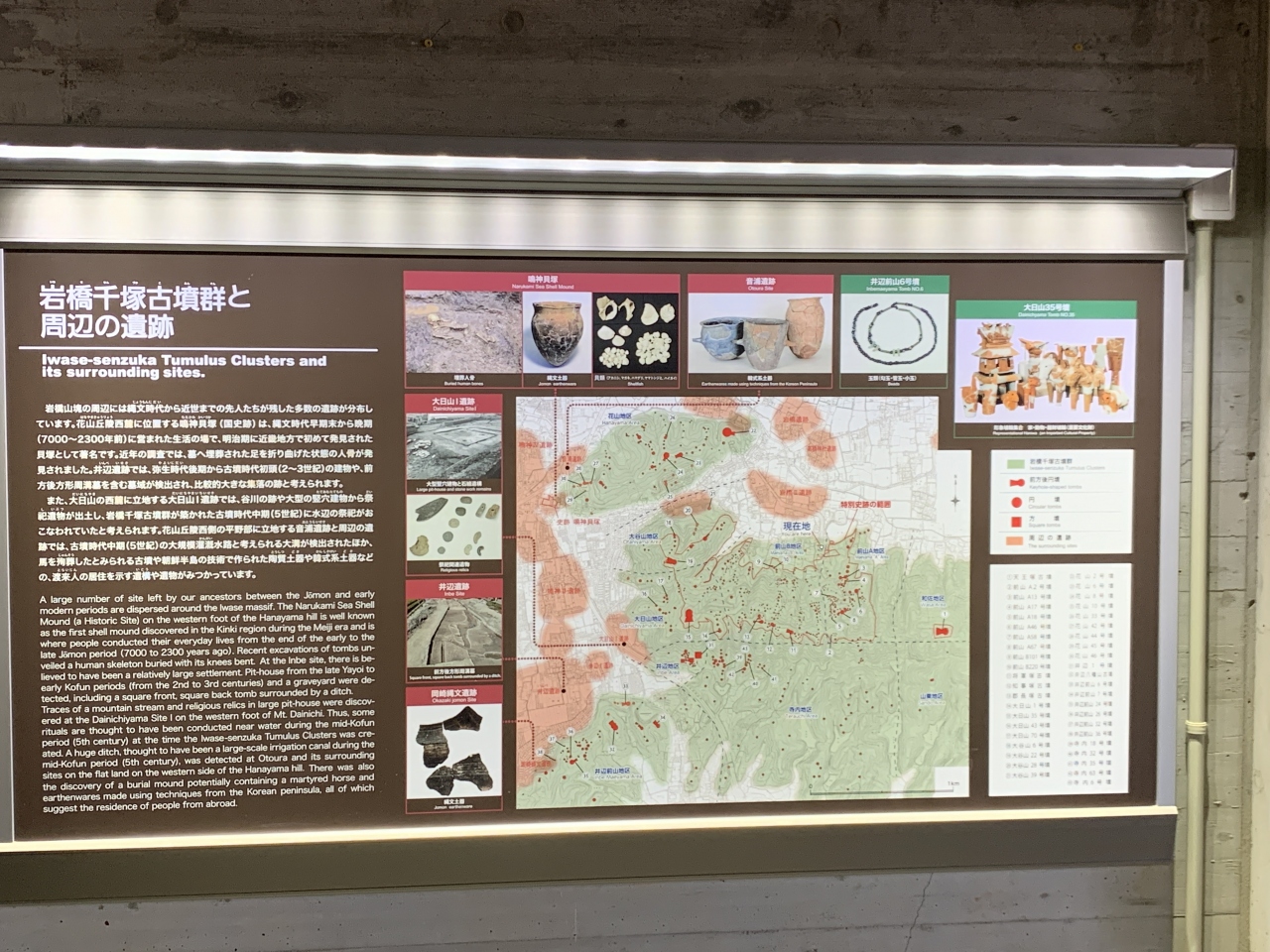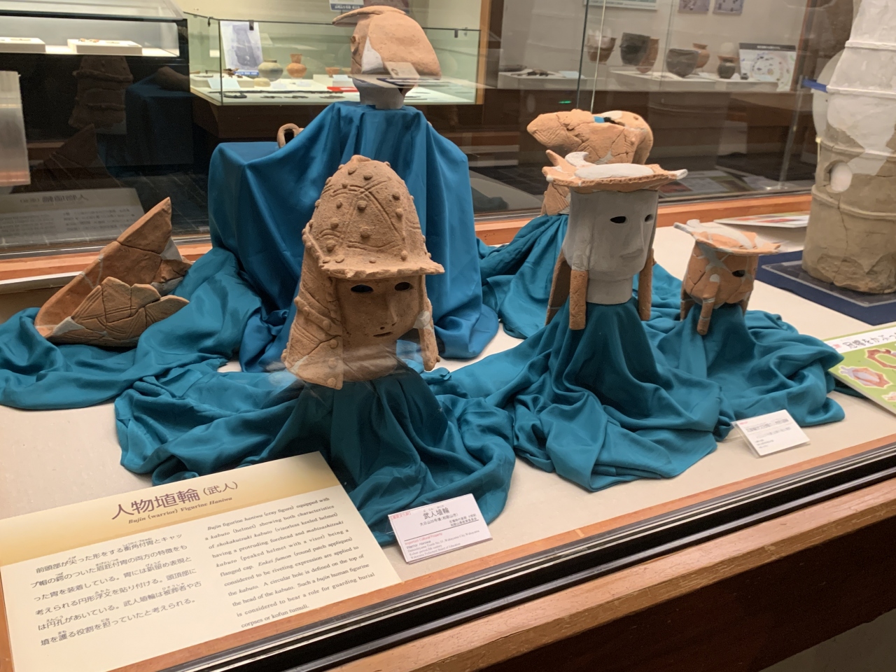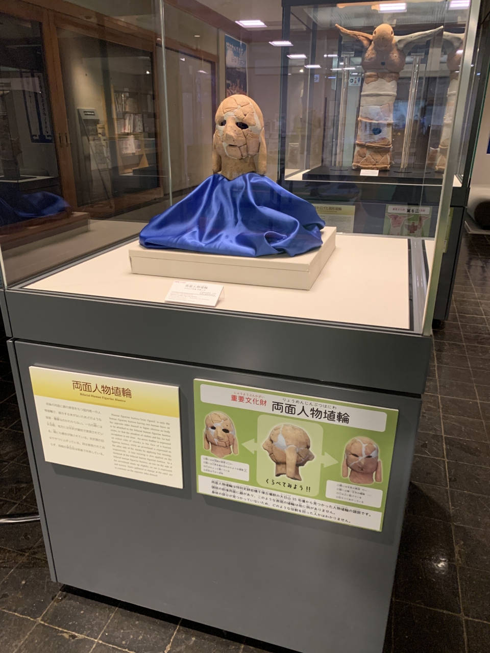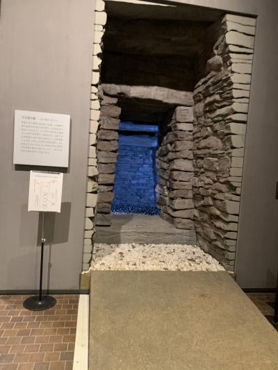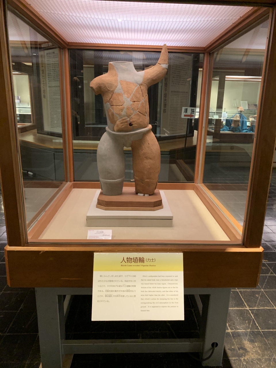 1階には、古墳を移築したものや民俗資料が展示しています。2階では、近くの岩橋千塚古墳群から出土した「翼を広げた鳥形埴輪」や「両面人物埴輪」「力士」など珍しい埴輪が展示されていました。古墳群が点在している紀伊風土記の丘を併せて見学すると、より理解しやすいと思いました。