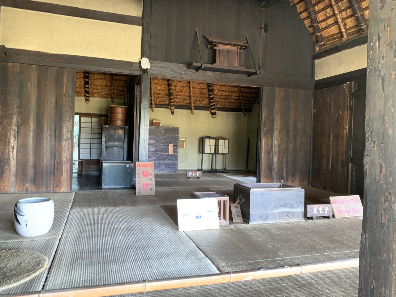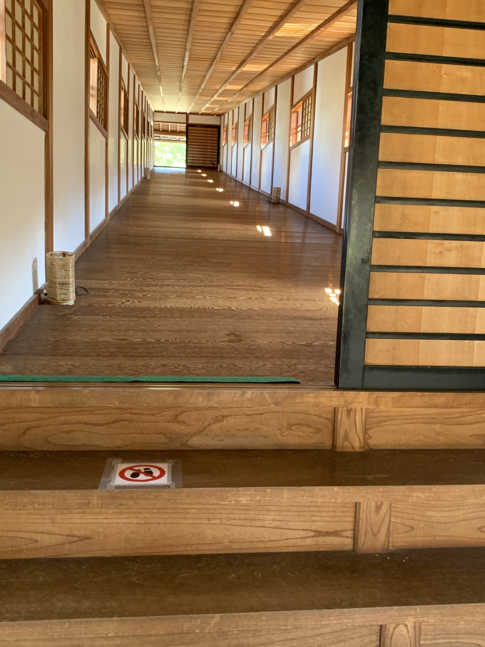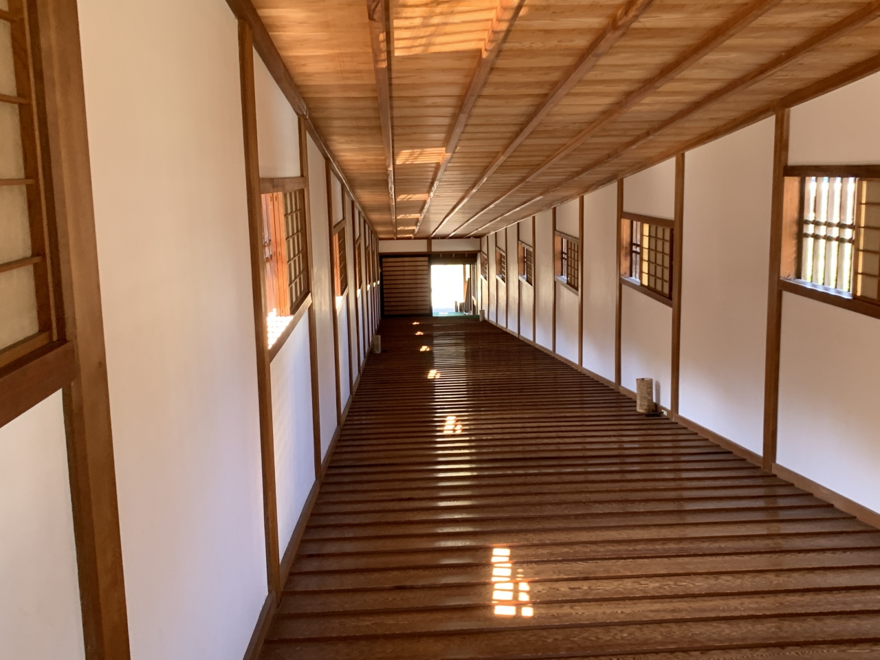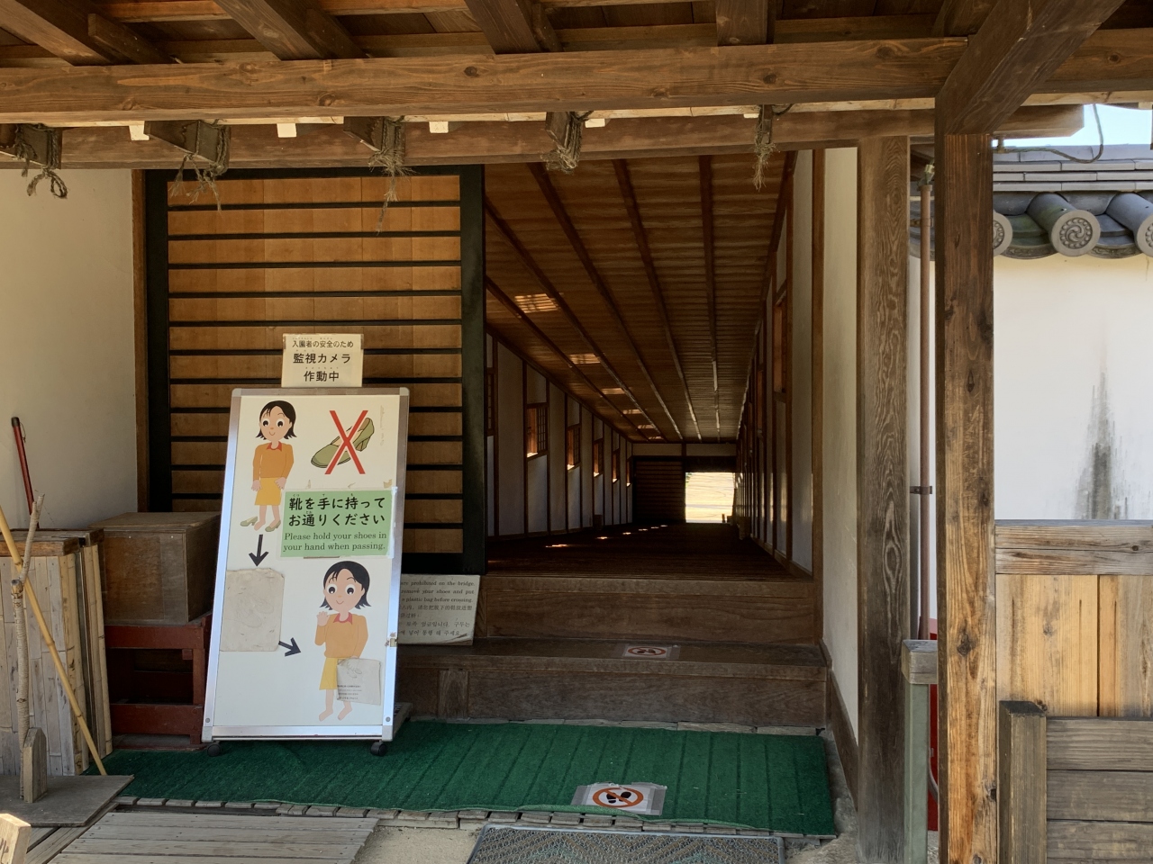橋の中は鋸歯(きょし)と呼ばれる小さな段差があり、ちょっと歩きにくいですが(見学者は靴を脱いで渡ります)、当時、草履を履いて渡っていたお殿様やお付きの人にとっては滑りにくく歩きやすい構造だったのだとおもいました。