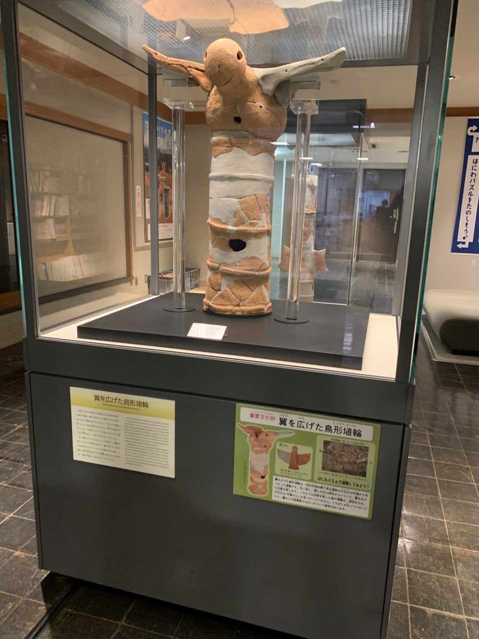 翼を広げた鳥形の埴輪などの珍しい埴輪の出土品が展示されています。