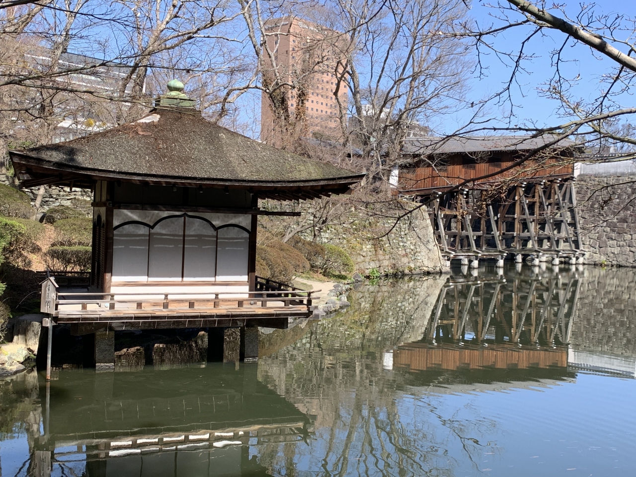 藩主とお付きの人のみが通れる橋でした。庭園から大奥のあった西の丸に掛かる傾斜の橋です。