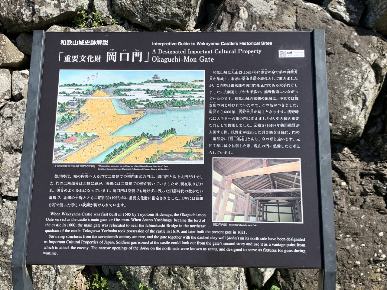 和歌山城内にあります。藩主とお付きの人のみが通れる橋で、長さは約27m、幅約3mで、庭園側から傾斜がある橋です。