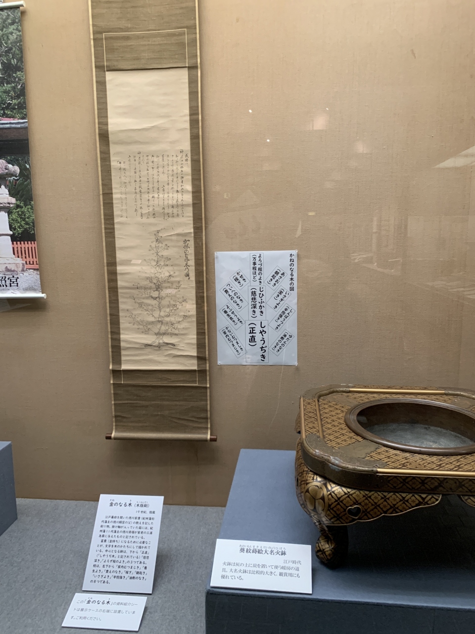 徳川家康が家臣に伝えたといわれる「かねのなる木」の掛け軸もあります。