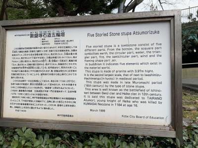 首塚は須磨寺の境内の中にもありますが、こちらは胴塚と呼ばれています。平敦盛は平清盛の甥にあたる人物で、笛の名手としても知られていますが、一ノ谷の合戦で、熊谷次郎直実によって討ち取られます。その後、熊谷次郎直実は、16歳であった敦盛が自分の子供と同じような年頃であったこともあり、討ち取ったことを苦悩し、無常を感じ、出家をするきっかけにもなりました。
