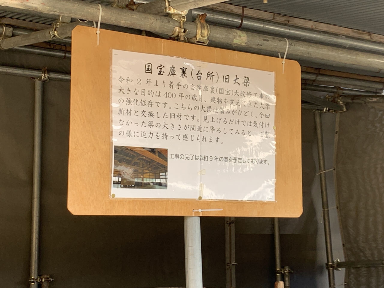 その工事の様子をパネルで紹介しており、文化財保護の補修工事の難しい工事の様子などを理解できました。