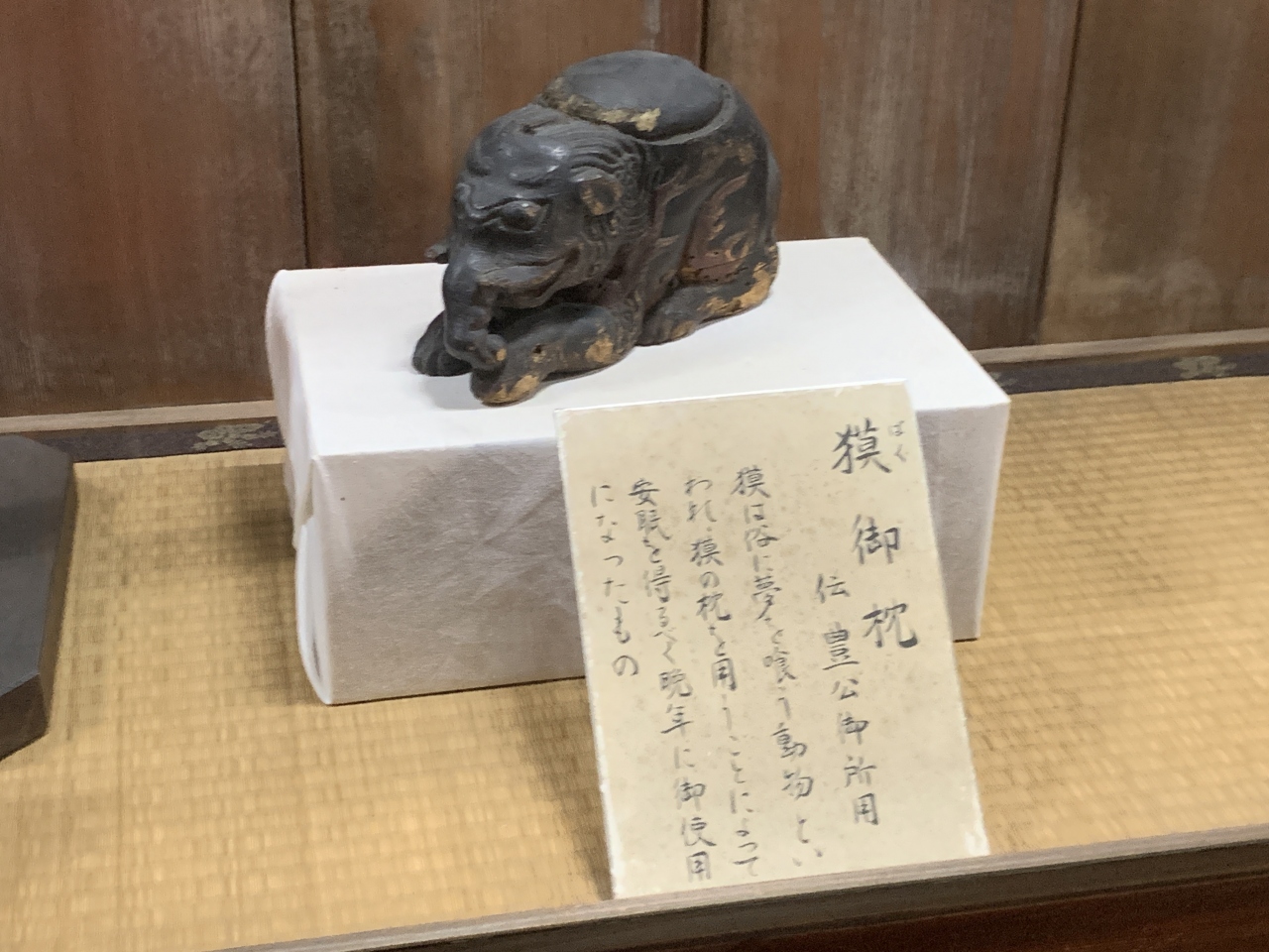 秀吉が使ったといわれる、獏枕も興味深く、桐唐草文蒔絵唐櫃という入れものも美しかったです。