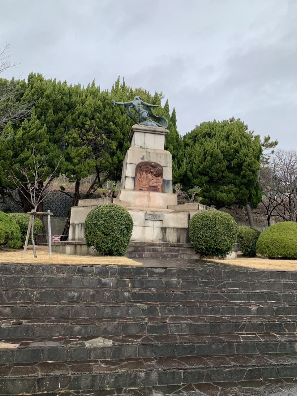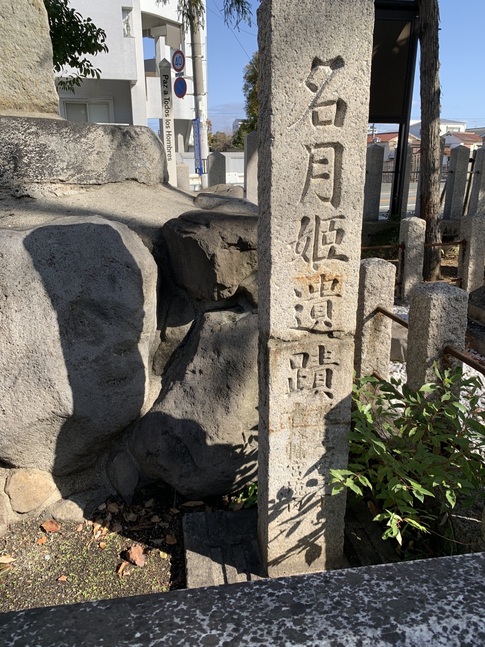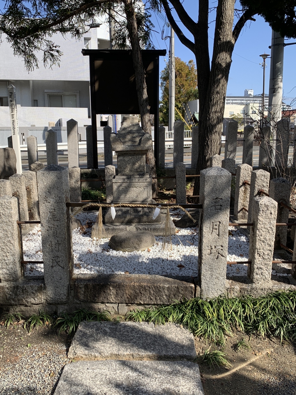 いまは、小さな庭のような場所に駒札が建っています。- 旅行時期