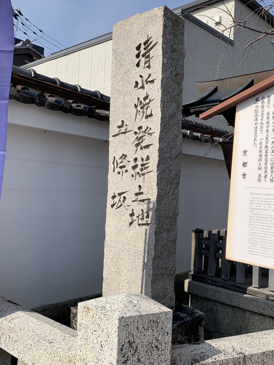 清水焼発祥の地の石碑がありました。陶器神社とも呼ばれ、美人祈願としても有名な神社です。