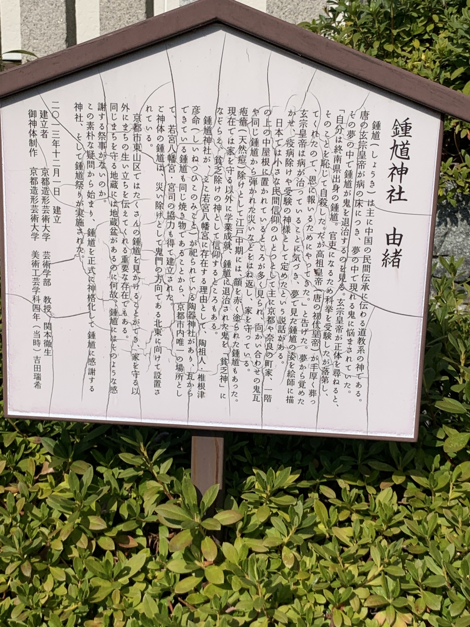 鐘馗は、中国の民間伝承の道教系の神さまで、疫病除け、受験の神様として信仰を集めていました。境内には、鐘馗の像があります。勇ましい姿の像でした。