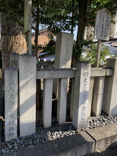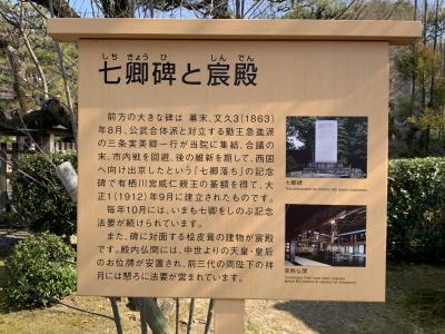 幕末には七卿落ちで、三条実美らの尊王攘夷派の公暁が京都を追われますが、妙法院で会議を開き、長州藩へ向かい西へ落ちのびています。境内に、大きな石碑がありました。