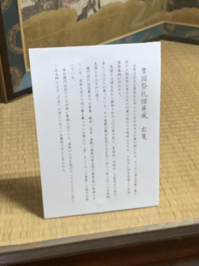 豊臣秀吉ゆかりの貴重な品々が展示されています。なかでも、豊国祭礼図屏風は当時の様子がうかがえます。