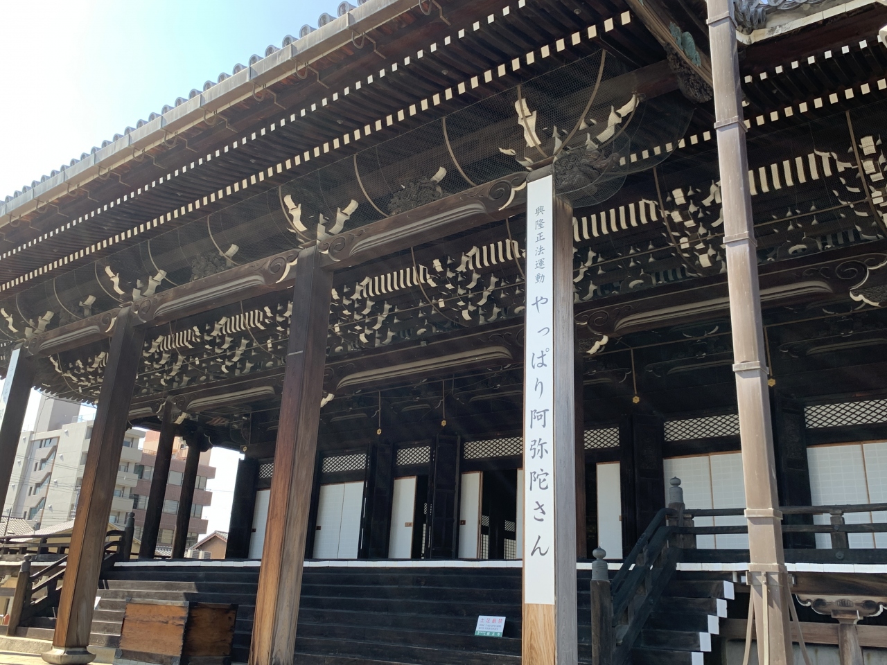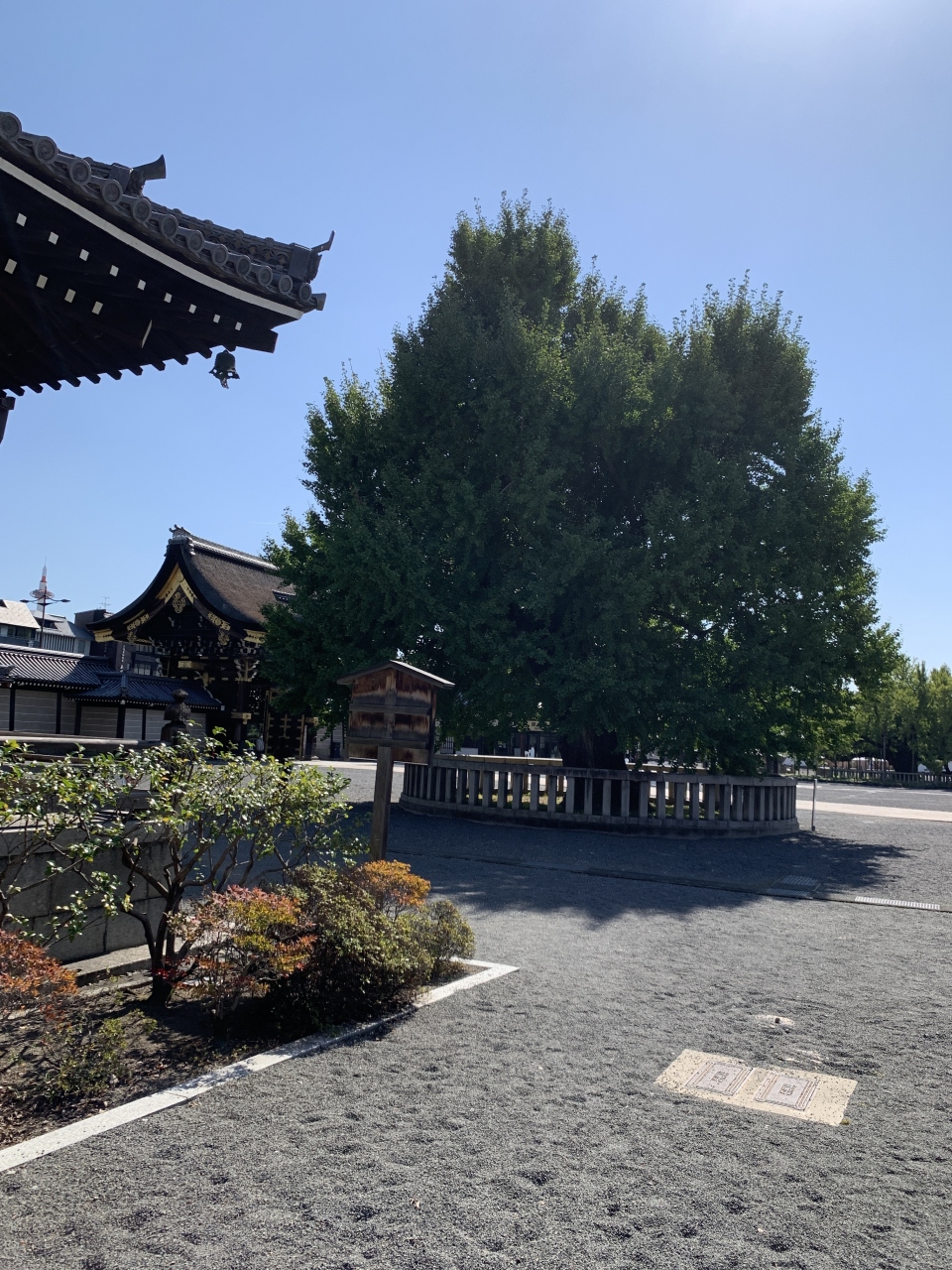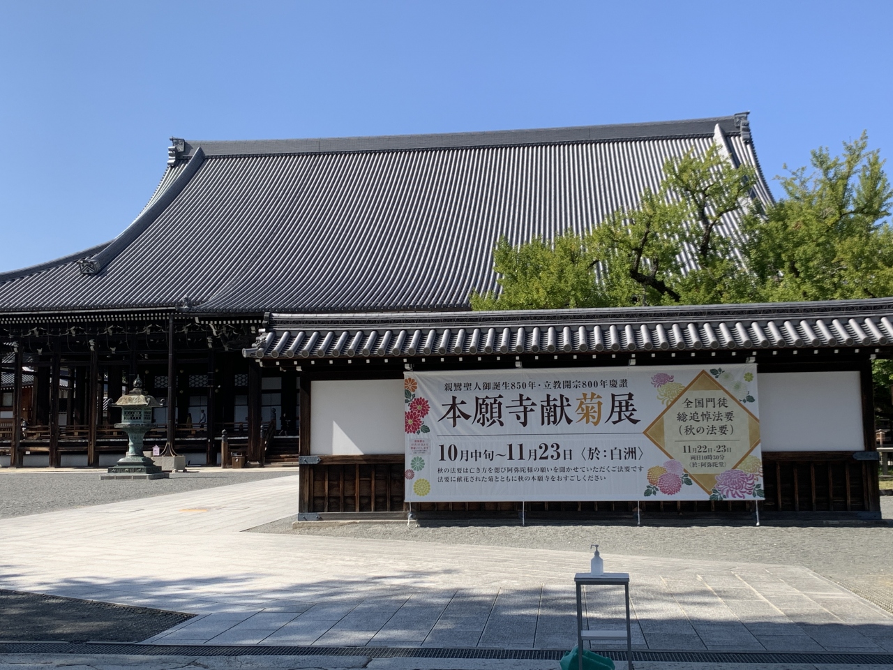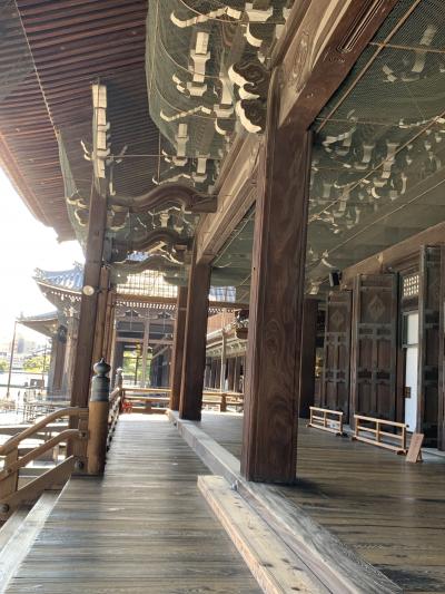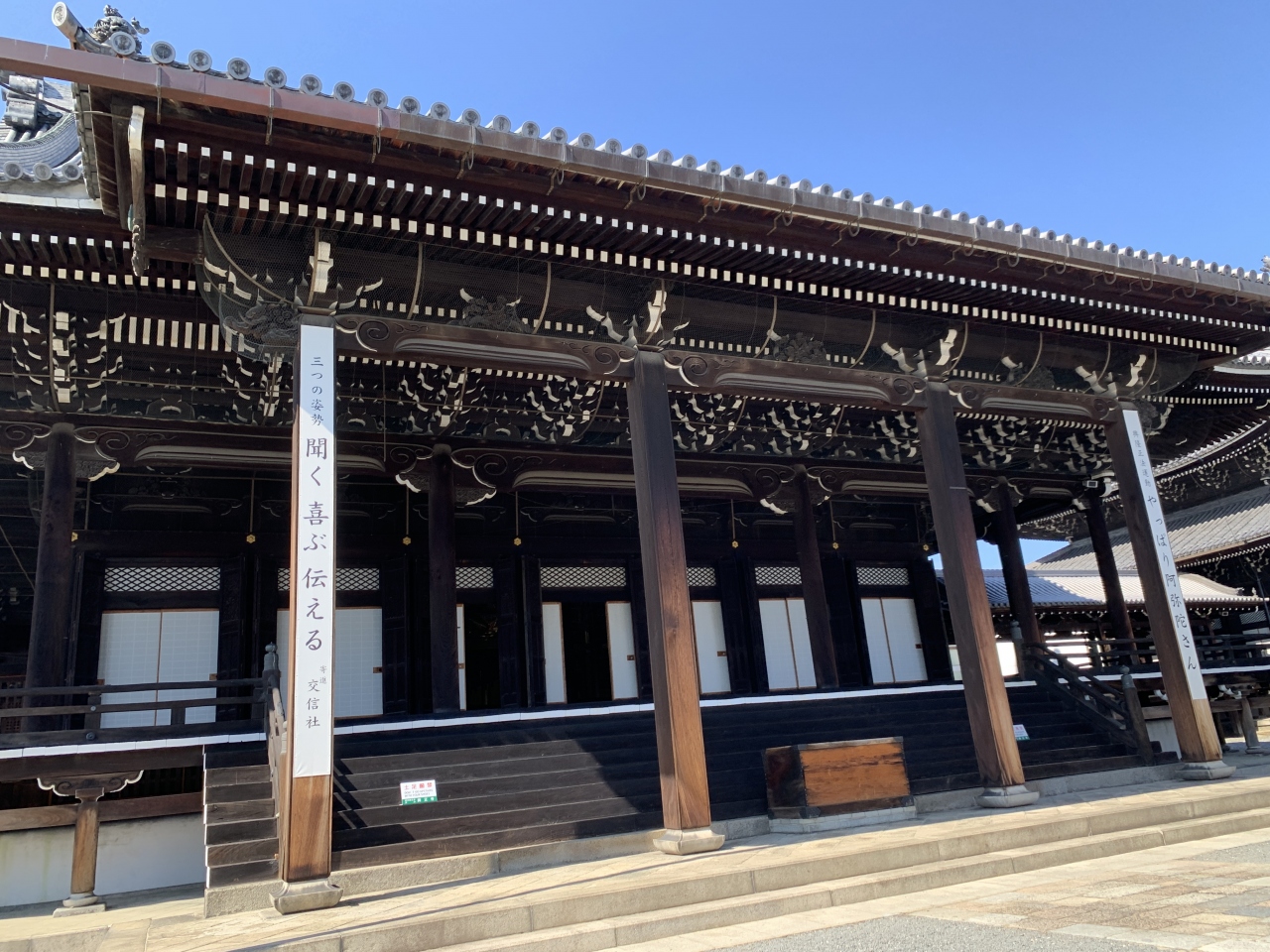 境内は広く、国宝や重要文化財の建物が連なっています。歴史は親鸞聖人が亡くなったあと、娘の覚信尼が御影堂を建てたことが始まりで、1591年には豊臣秀吉の土地の寄進を受け、阿弥陀堂や御影堂などの建物が造られています。京都では「おにしさん」と呼ばれて親しまれています。開放的で、落ち着いた雰囲気は変わらず、ゆっくりと拝観できました。修復された唐門も素晴らしかったです。いつまでも飽きずに観られることから「ひぐらしの門」ともいわれています。また、新選組は屯所跡がいくつかありますが、西本願寺もその一つで、説明書きもありました。