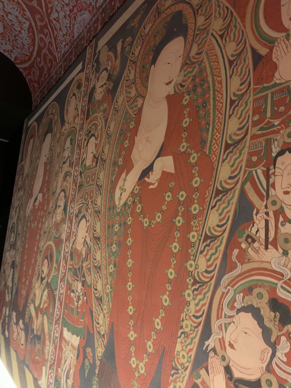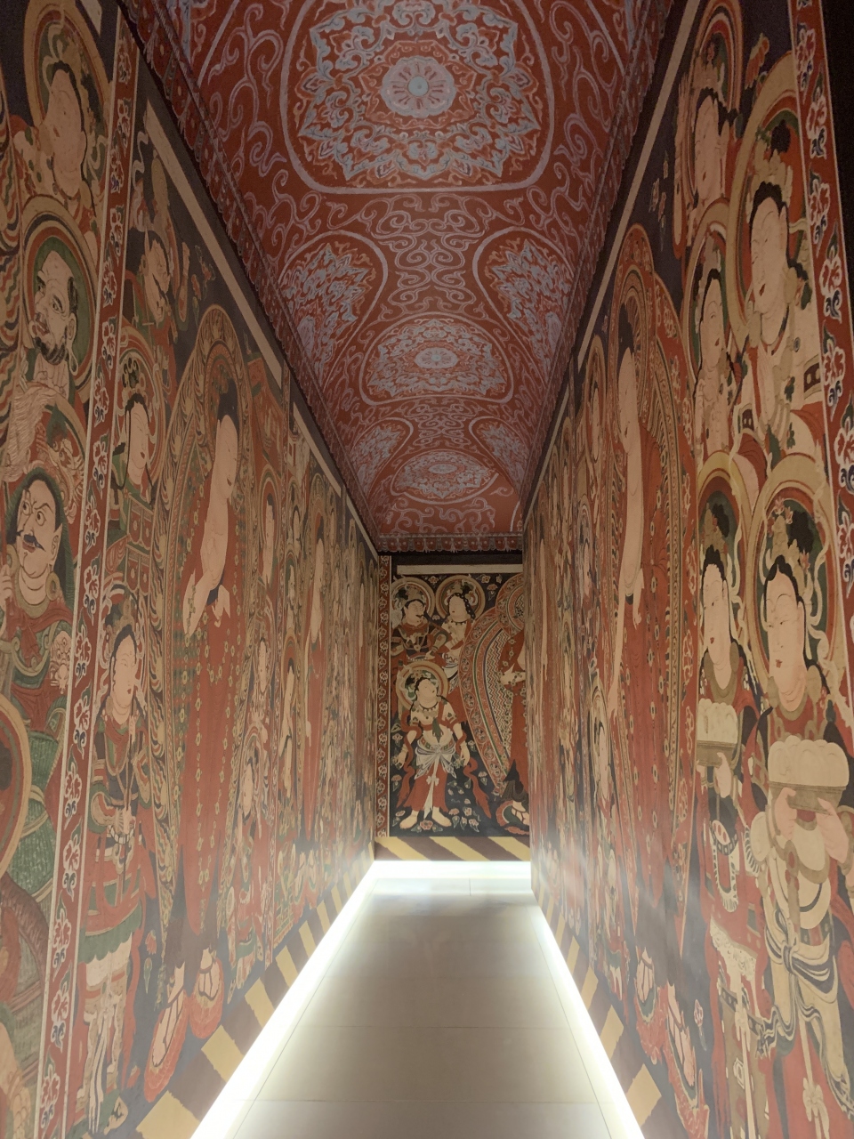 また、中国の新疆ウイグル自治区のトルファン郊外にあるべゼクリク石窟寺院の大回廊を復元した展示も見ごたえがありました。原寸大で一部の回廊を復元展示したものです。