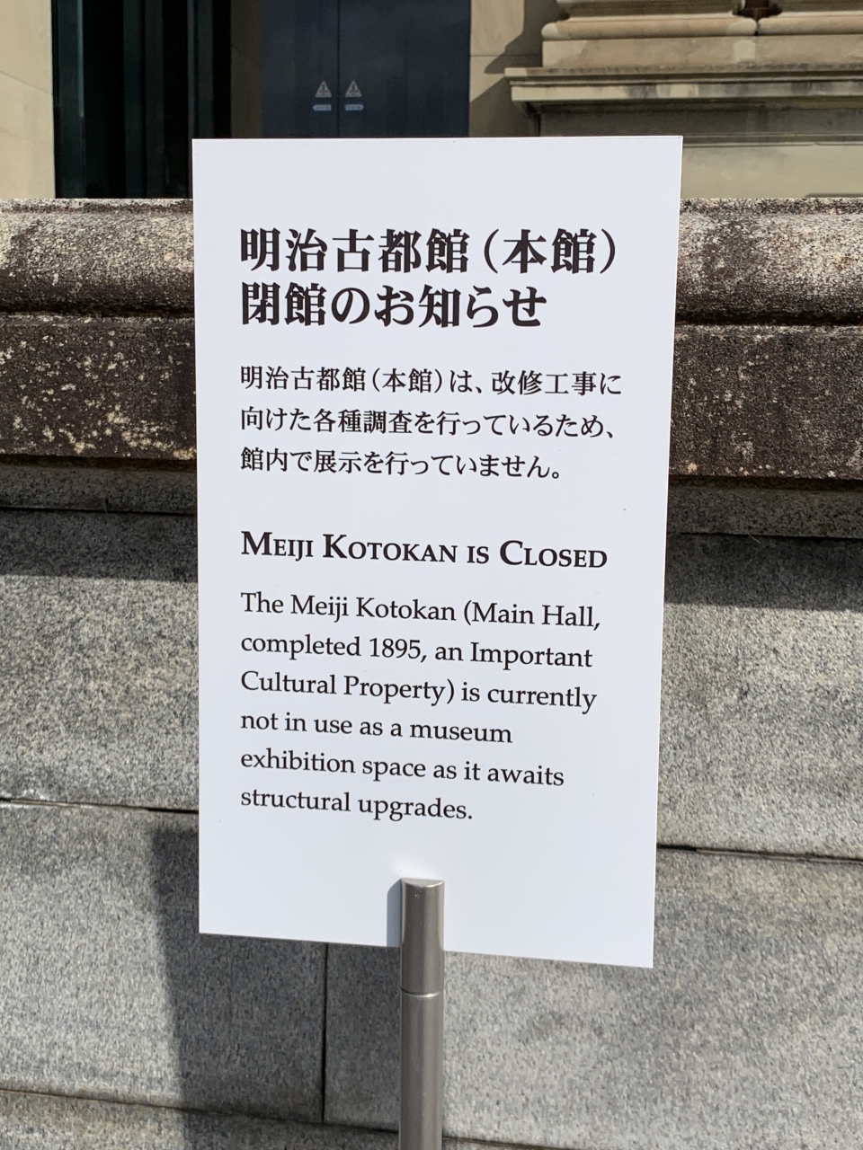 今は閉館となっている明治古都館は片山東熊の設計です。フランス・ルネサンスのバロック様式を取りいれつつ、レンガ造りの堂々とした建物で、以前はこちらで展示をしていました。今は耐震改修などの計画のために閉館となっています。
