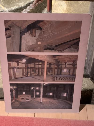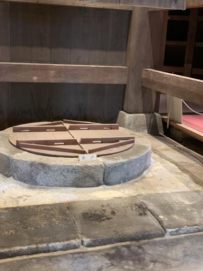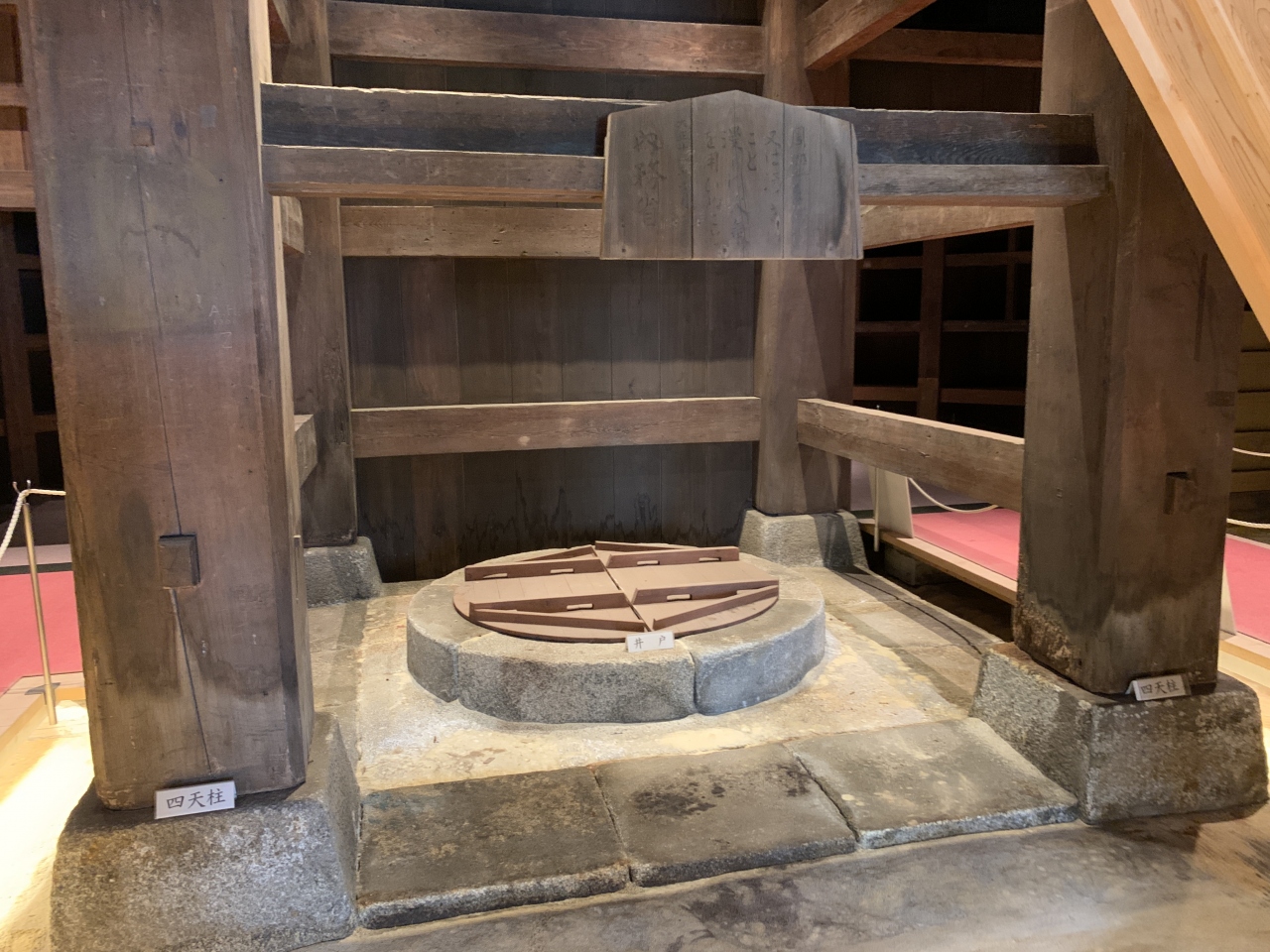 二階は大砲の重さに耐えるよう、一階には1辺48㎝の大きな欅の柱や大きな梁がめぐらされ、頑丈な作りです。造られたときは、西洋式の漆喰を使い、目立たないように黒色や鼠色にしていたようです。石材も瀬戸内海の花崗岩を使用、3000トンもの花崗岩でできています。高さもおよそ11,5m、横も15mと見上げる大きさです。