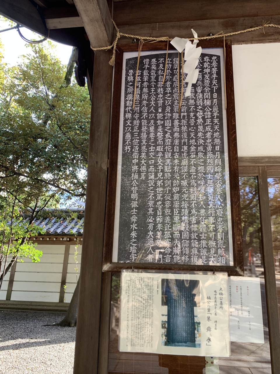 湊川神社の中にあります。楠木正成を敬愛していた徳川光圀により墓碑が建立されました。