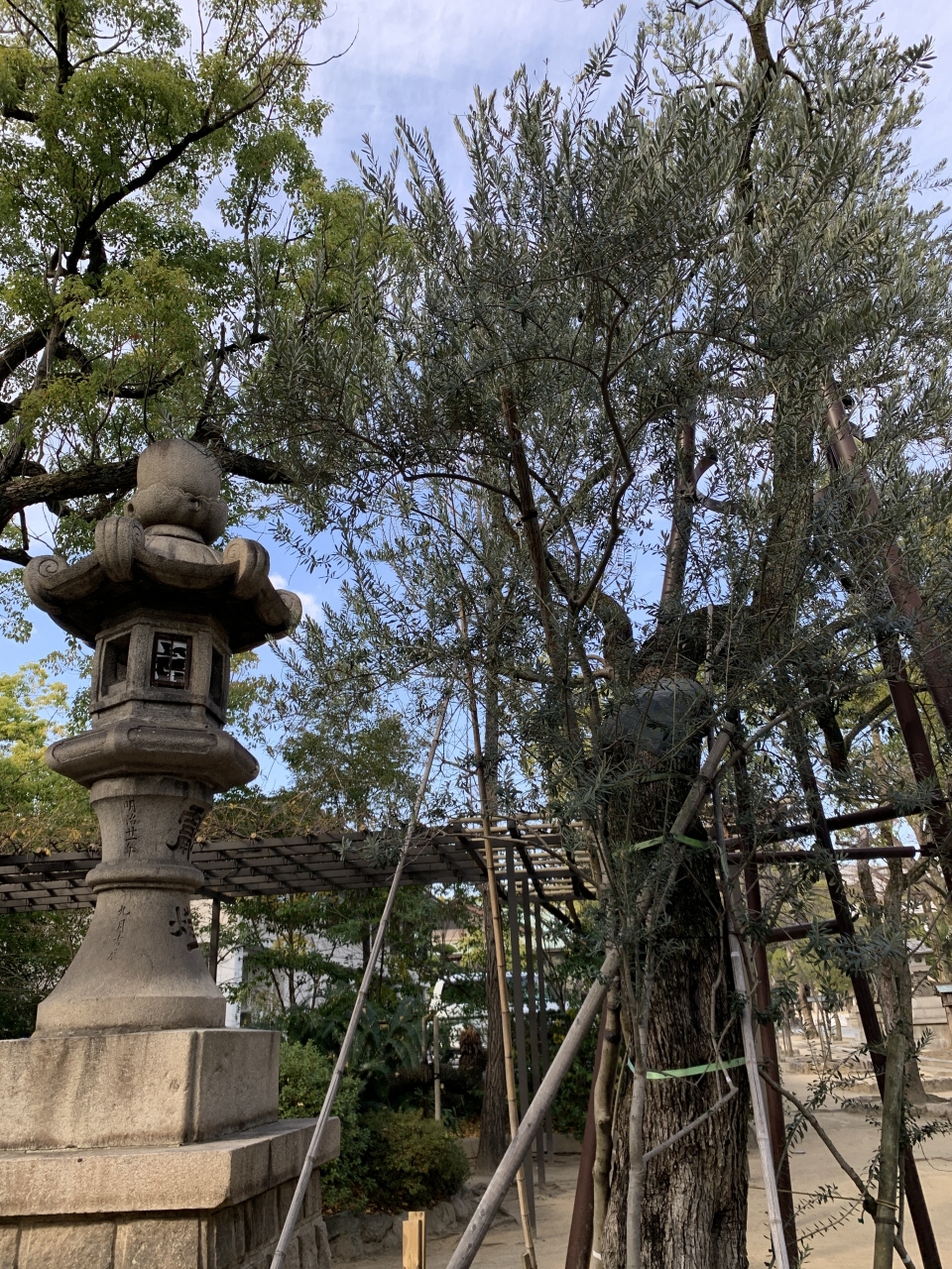 湊川神社の境内に日本最古といわれるオリーブの樹があります。