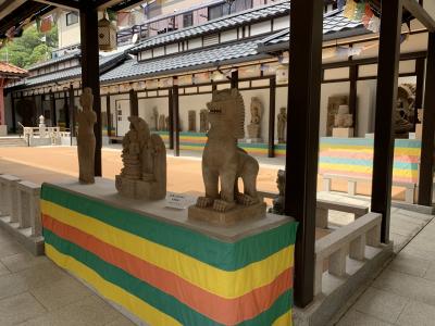 創建は古く、886年のお寺です。一の谷の戦いで、平敦盛と熊谷直実の一騎打ちの場面が再現されています。宝物館では、敦盛の愛用の笛や弁慶の鐘、源平ゆかりのもの、須磨寺に関しての展示が見学できます。境内には、平敦盛の首塚もあります。美しい三重の塔は1984年に再建されたものです。弘法大師1150年忌、平敦盛800年忌、当時の創建1100年を記念して建てられました。(パンフレットより)周りの緑の中で一段と美しくそびえたっていました。お寺入口近くにある亜細亜万神殿には多くのアジアの石像が安置されていました。