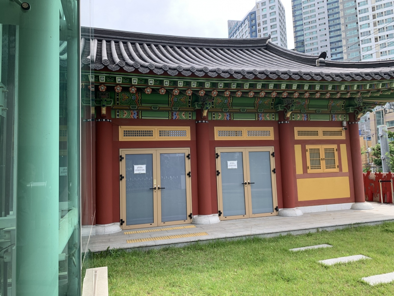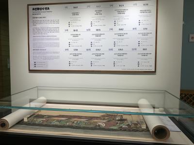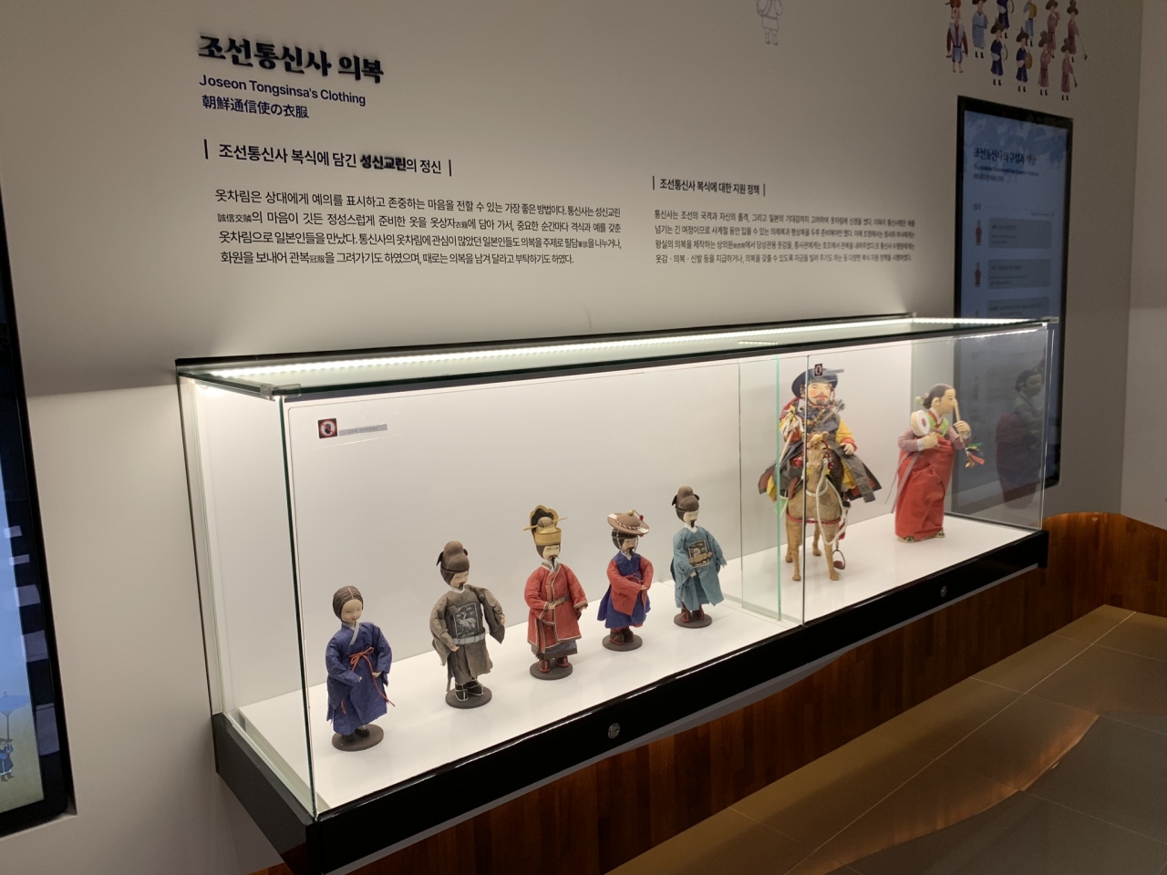 地下鉄の凡一(ポミル)駅から徒歩で15分くらいのところにありました。小さな資料館ですが、1階では朝鮮通信使の史料が展示され、2階ではスクリーンで朝鮮通信使が日本、当時の江戸に到着したときの様子が映し出されています。スケーターや自転車に乗った現代の子供が紛れ込み、スマホで撮影する江戸時代の人々、ドローンも飛んでいて、とても面白い映像でした。1607年から1811年まで12回に及んだ朝鮮通信使の歴史がわかります。