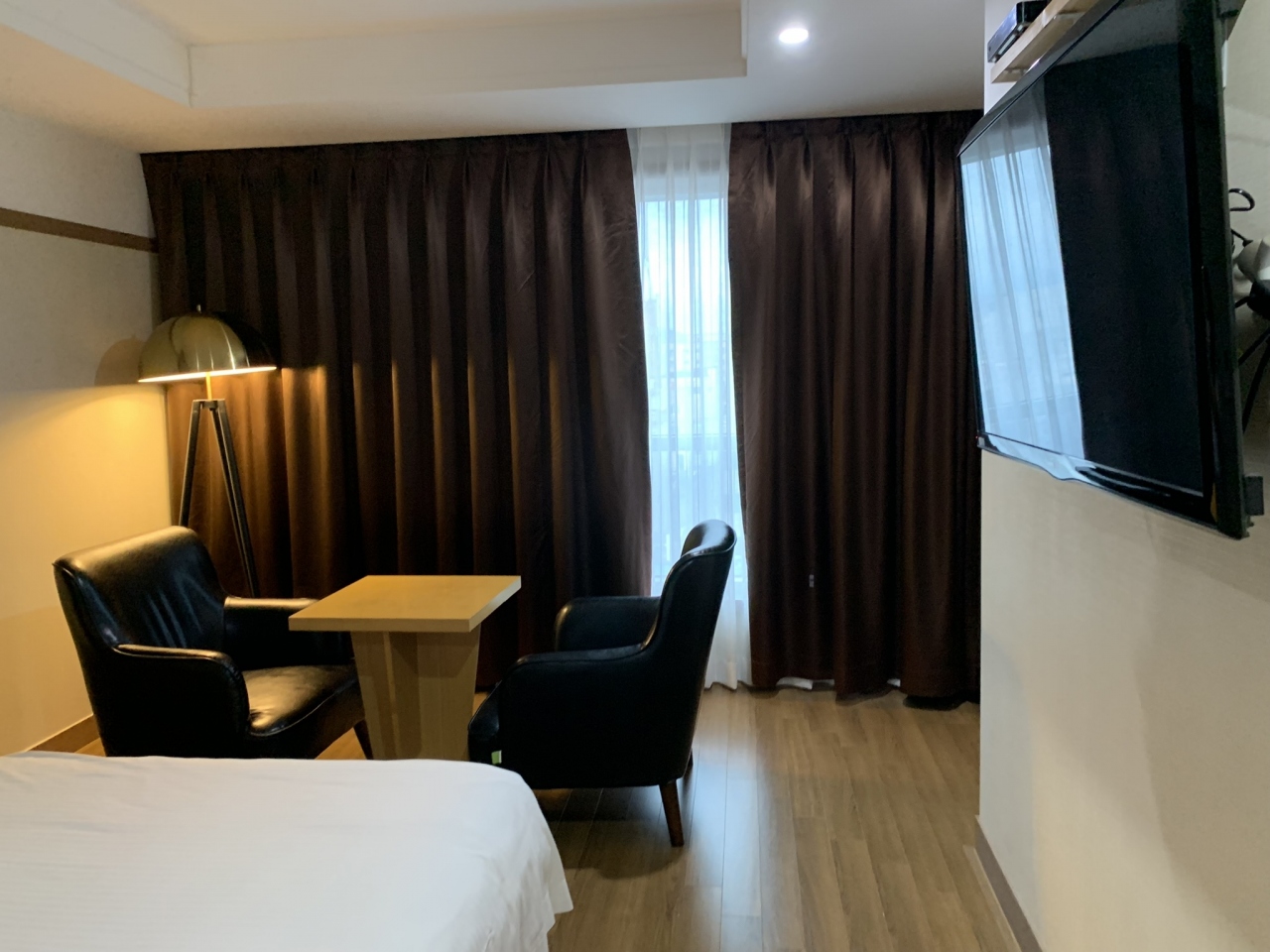 ビジネスホテルよりも広めの部屋で、清潔で居心地の良い部屋でした。慶州の街歩きにはとても便利で、バスターミナルからも近いです。釜山からはバスで移動しましたので、とても便利でした。近くにはマクドナルドやスターバックス、小さなレストランも多いです。朝ごはんのブッフェがついていました。お風呂にはバスタブがありませんでした。