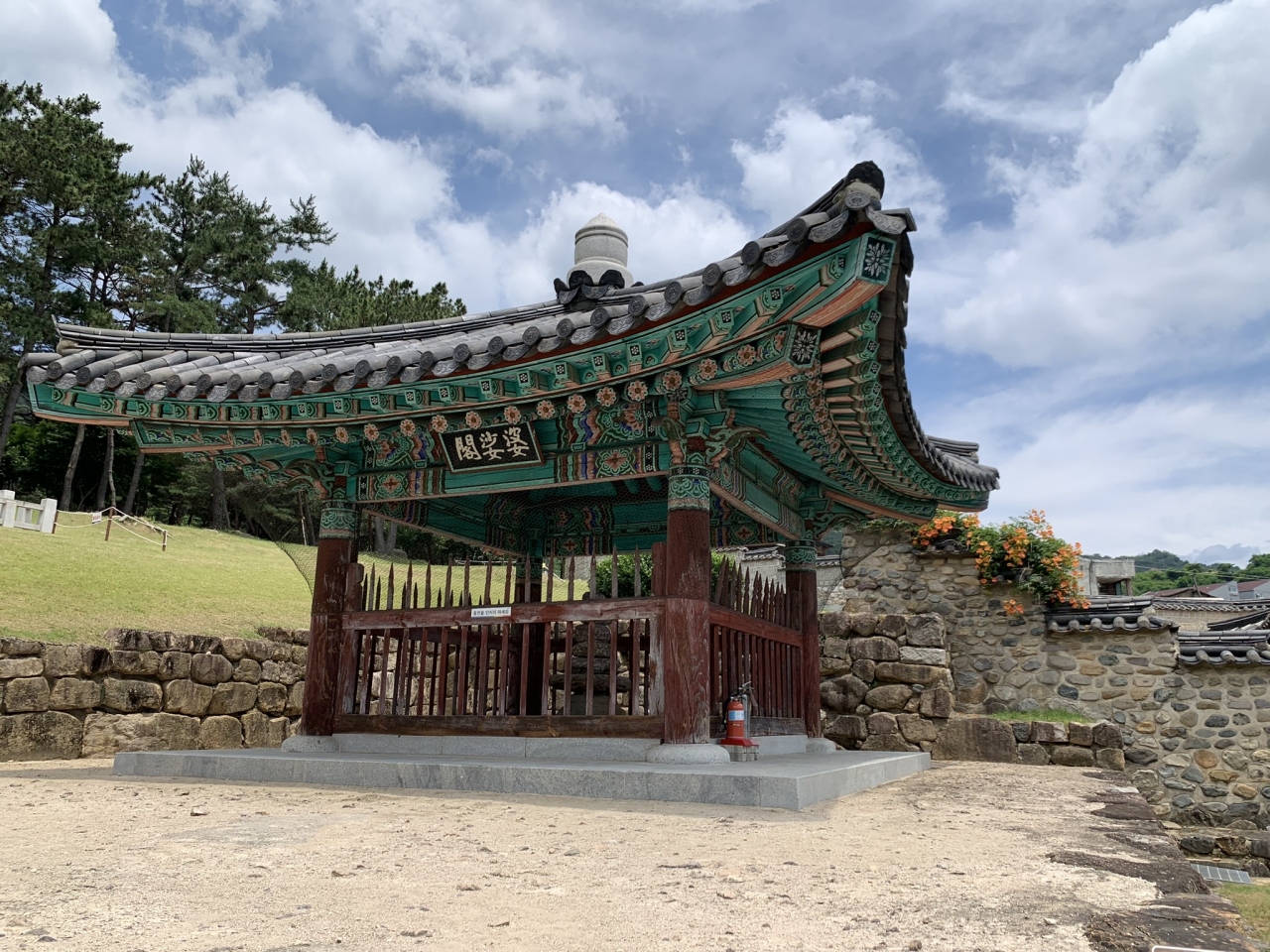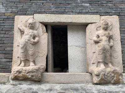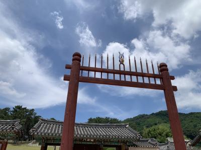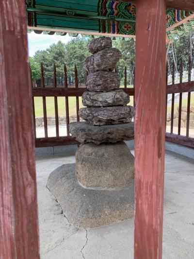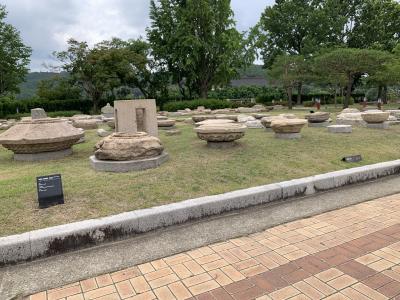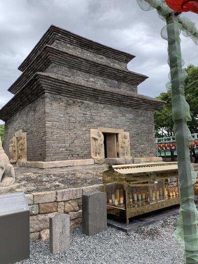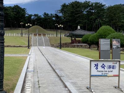 こんもりとした綺麗な丸い円墳がありますが、その周りも緑が整備されて、とても静かできれいなお墓でした。インドから船に乗ってやってきたといわれていますが、船が無事に着くように、船に婆娑石塔と呼ばれる石塔を乗せてきたそうです。その石塔が大切に展示されていました。内三門、外山門、、紅箭門と呼ばれる建物があります。