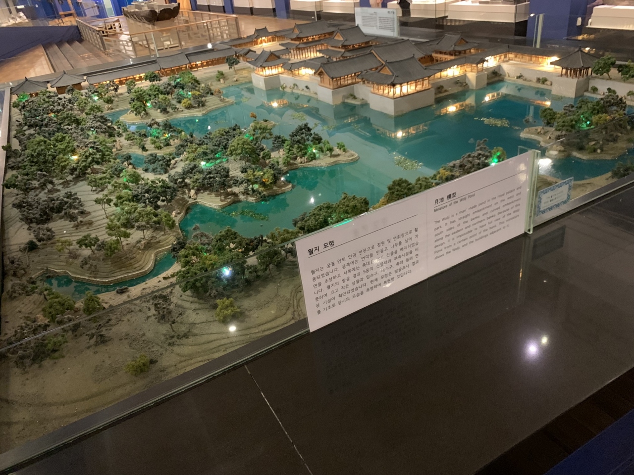 広い敷地内にはテーマごとに建物が分かれて、とても見ごたえのある博物館でした。新羅時代の歴史がわかる新羅歴史館、仏教などの美術品を集めた新羅美術館、統一された後の新羅の文化や王室の歴史がわかる月池館を見学しました。月池は674年に文武王が建設した人工池で、貴族たちが池に船を浮かべて池に映る月を楽しんだといわれています。