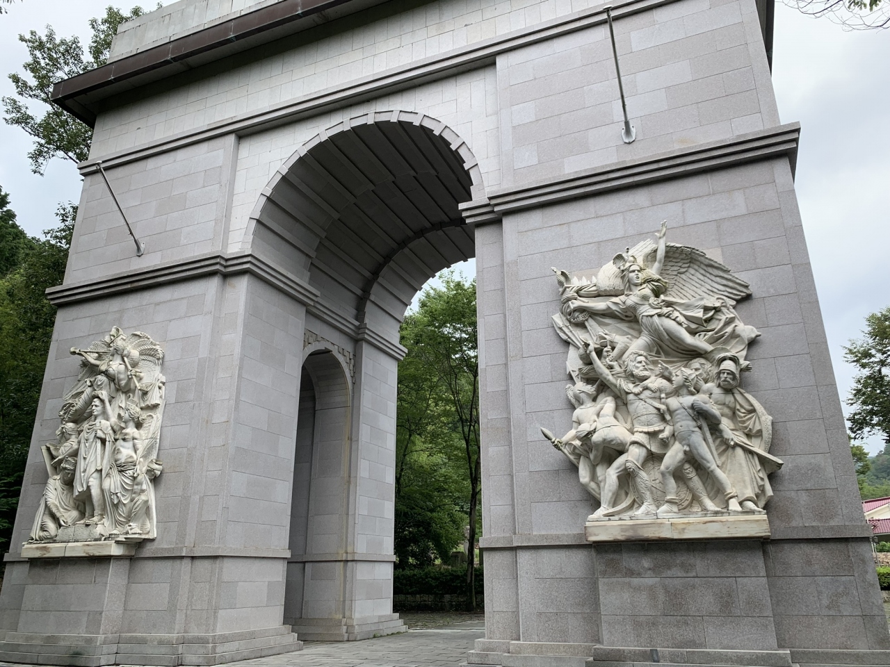 孫を連れていきました。見学場所は二つに分かれています。凱旋門や兵馬俑、万里の長城、故宮、ピラミッドなどの大きな建築物が本物そっくりに造られており、またモアイ像などの世界の著名な石像をはじめとする「石のエリア」があります。さらにモノレールで山頂に登る、ノイシュバンシュタイン城を模したお城がそびえたつ「城のエリア」です。