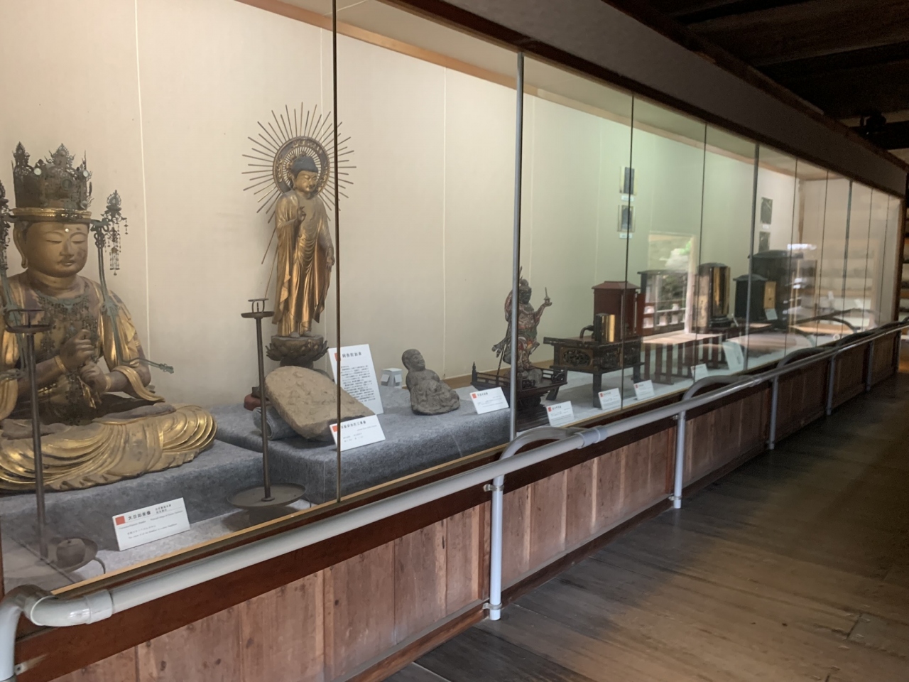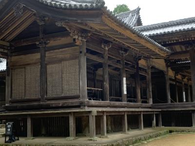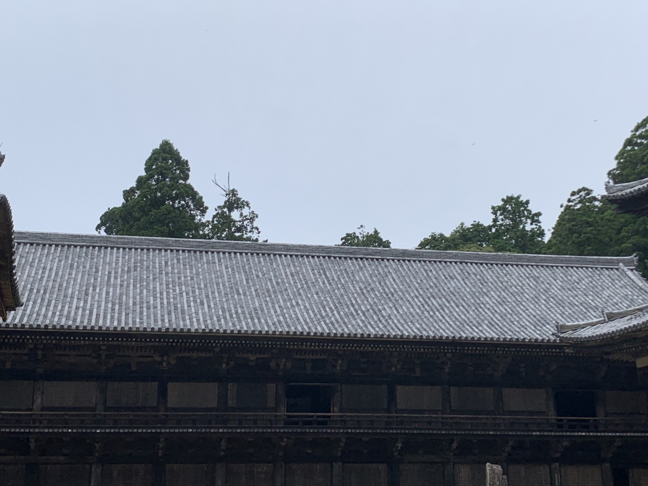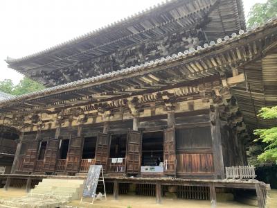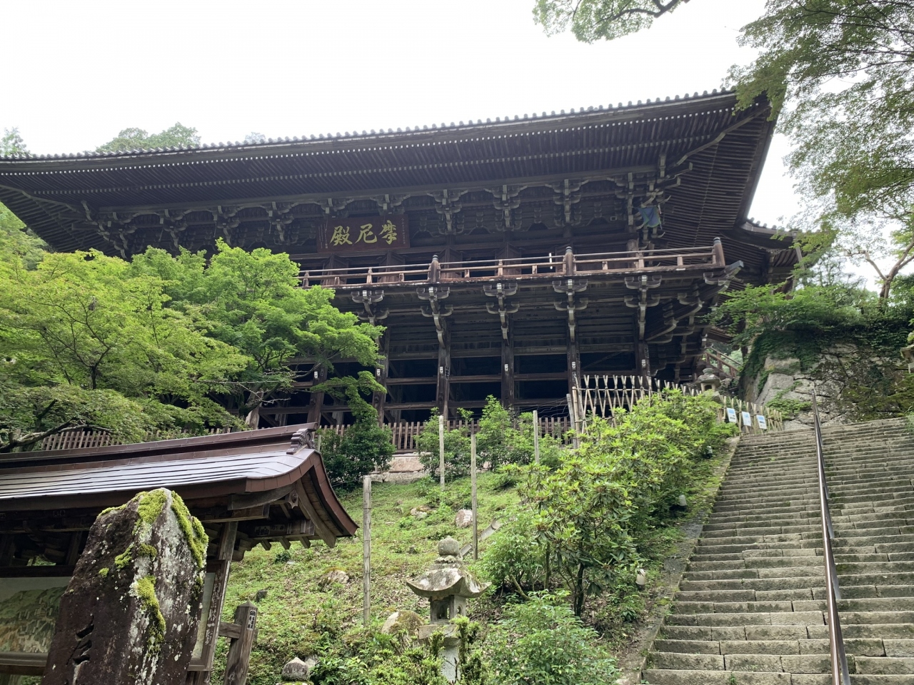 岩山の中腹に建つ「摩尼殿」は懸け造の建物で1933年の落慶。ここから、さらに参道が続き、大講堂、食堂、常行堂があります。食堂の1階では催しものを、2階では宝物館としてお寺の仏像などが展示されていました。食堂は室町時代に建てられたものだそうです。境内には樹齢700年といわれる杉の樹をはじめ、自然が豊かな山の風景が広がっています。- 旅行時期