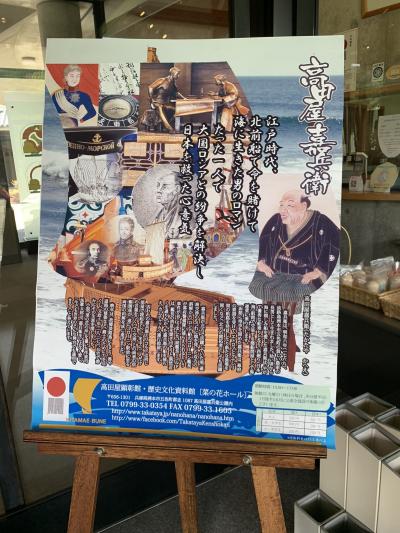 高田屋嘉兵衛は今の淡路島洲本市五色町都志で生まれ、廻船業者として、また国後と択捉島間の航路の開拓をするなど、北方の事業も展開した商人ですが、1812年にロシアに拿捕され、翌年1813年には帰国できますが、抑留中にはロシアの要人とも接触し、ゴローニン事件も解決に導いています。