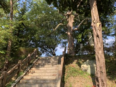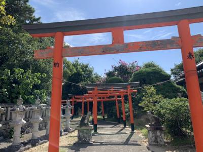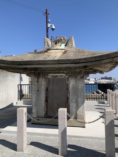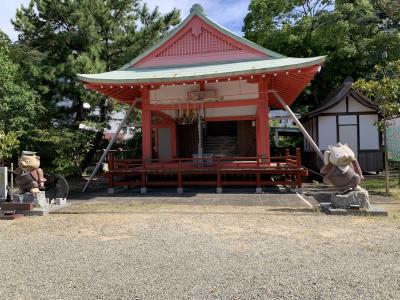 神社の縁起によると、創建は990年にもさかのぼり、江戸時代には近くの洲本城の藩主蜂須賀氏や家老洲本城代稲田氏も祈願をを行い、洲本城の鎮守として守られてきた歴史がある由緒ある神社です。人々を苦しみから救い、進むべき道を示す神、開運開きの神として崇敬を集めてきました。(神社H.Pより)境内は広く、洲本城の建物の一部、玄関や書院が移築されています。外からの見学のみでしたが、上品な建物でした。また、柴右衛門大明神社があり、人気、商売、芸能の神として藤原寛美さんらの役者の信仰を集め、大阪の中座が閉館してからは境内にお祀りされているそうです。柴右衛門は人に化けた狸だったという伝説があり、芸事の神様として信仰を集めています。