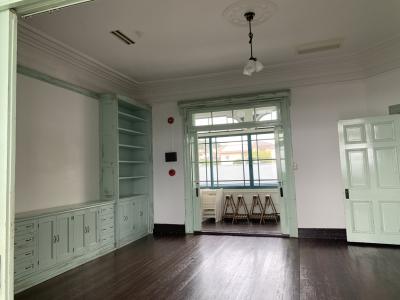 この旧グッゲンハイム邸も数少ない洋館の一つで、大切に保存され、また月に一度だけ公開見学があります。緑と白のコントラストの木造りの温かさを感じる建物で、1909年に建てられたそうで、100年以上の歴史があります。最初はドイツ人の貿易商のグッゲンハイム氏が住み、その後数人の方が住み変わり、二階の和室なども造られています。