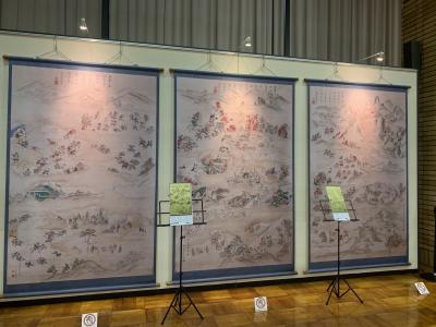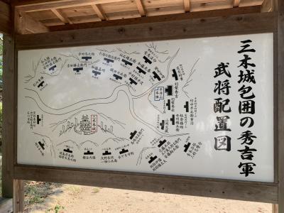 特に印象に残ったのは、複製ですが、三木合戦の様子がわかる絵図です。法界寺というお寺に伝わる絵図ですが、別所長治の法要の際にはこの絵図を使って説明をされるそうです。また、三木合戦を説明したビデオもあります。
