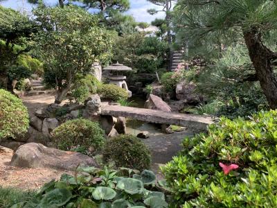 明治末期に建てられた別荘です。明治から大正にかけて、三木町長や初代郡会議員、町会議員としての政治家、また三木銀行の設立にも寄与した実業家として活躍した小河秀太郎の別荘で、皇族の宿泊のための設備を改築するなどもしています。どの部屋も細やかな上品な雰囲気が漂っていて、庭も池泉回遊式庭園で、様々な植物、樹々で埋め尽くされて、今も丁寧に保存されていました。敷地内に古民家風のカフェがあり、のんびりとお庭を観ながら休憩できました。アイスコーヒーを注文しましたが、ワッフルがついて200円というお値段でした。本格的なアイスコーヒーでとても美味しかったです。
