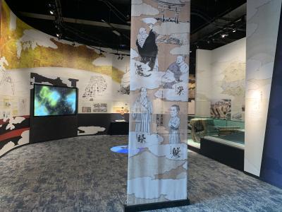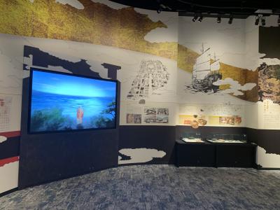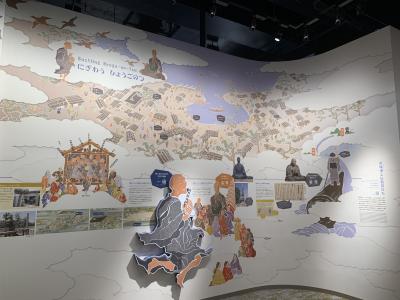 蜂須賀氏の御殿のあった洲本城跡にあります。三階まで展示があり、淡路の自然や歴史、民俗、美術と幅広い展示がありました。三階には洲本で幼年期を過ごした画家の直原玉青の記念美術館もあります。自然のコーナーでは淡路で発見されたヤマトサウルス・イザナギイの復元された頭部や復元模型、アンモナイトなどの化石もありました。民族では人形浄瑠璃やだんじりが展示され、原始古代から近代までの歴史の紹介、展示もあり、明治3年に起こった庚午事変についても説明がありました。二階には淡路にゆかりのある美術品や民俗の展示があります。