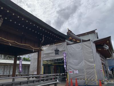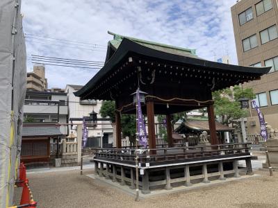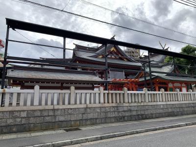 創建は明らかではないようですが、江戸時代の元禄以前から祀られていたそうです。有名なのは初春におこなわれる「十日えびす祭」です。社殿は阪神・淡路大震災後の被害により再建されています。見学した時も改修工事?が行われていました。
