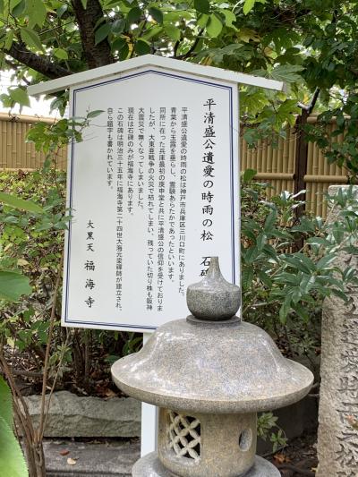 境内にも見どころがいくつかあり、とくに、平清盛が愛した時雨の松の石碑がありました。松は、第二次世界大戦や阪神・淡路大震災で、すっかり消滅してしまいましたが、石碑だけが残っています。