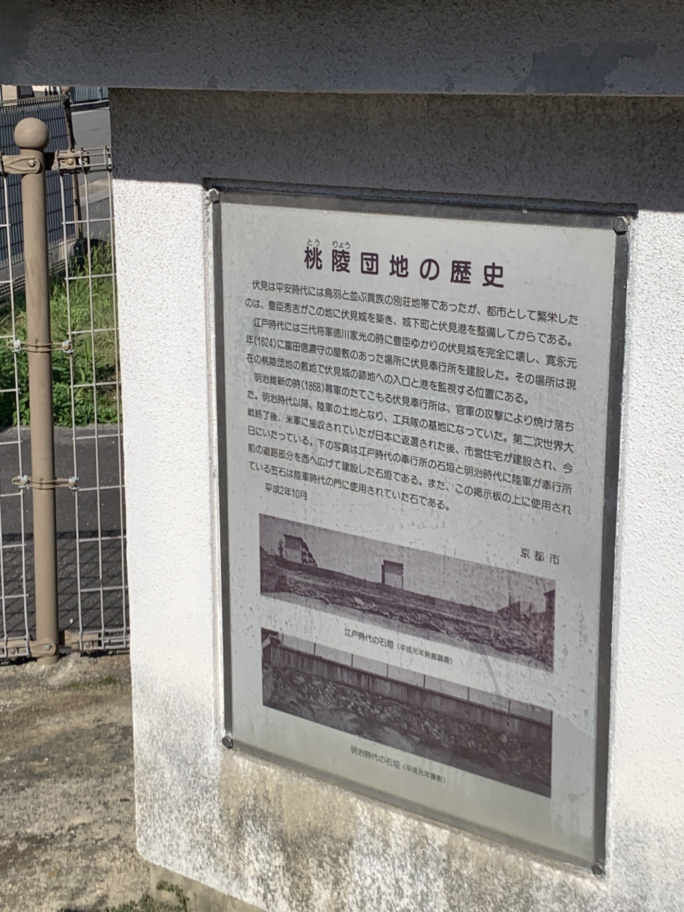 近くに、桃陵団地の歴史の説明板もありますが、そこには江戸時代と明治時代の石垣の写真もありました。説明板にもありますが、明治維新後は陸軍の工兵隊の基地となり、こちらの説明板に使われている笠石は陸軍時代の門だったものだそうです。