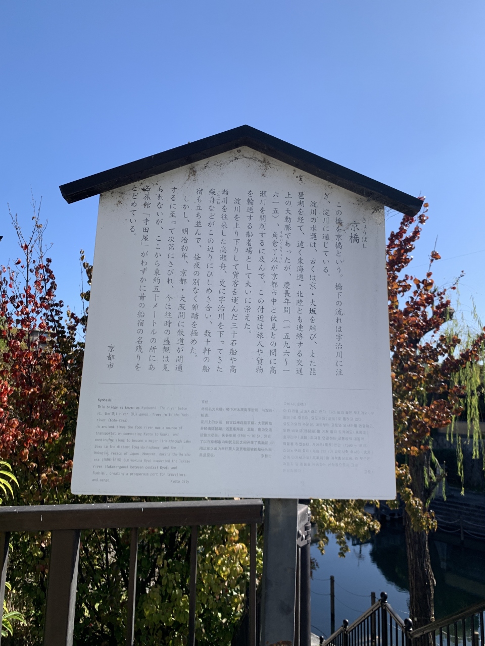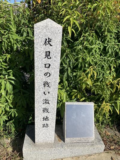 京橋の端のふもとに石碑と説明板があります。薩摩藩・長州藩・土佐藩を中心とした新政府軍と旧幕府軍・新選組・奥羽越列藩同盟などが戦った戊辰戦争の始まりが鳥羽伏見の戦いで、このあたりは激戦地だったようです。敗走する旧幕府勢力は伏見の民家を焼くなどして、多大な被害を出しました。近くの寺田屋もこの戦いで焼失しています。