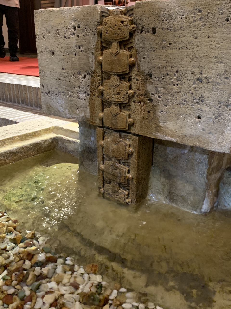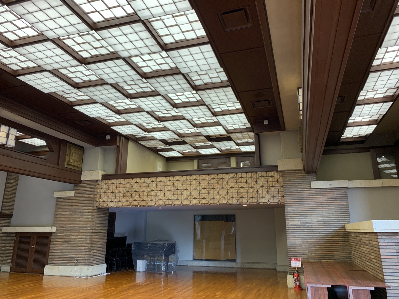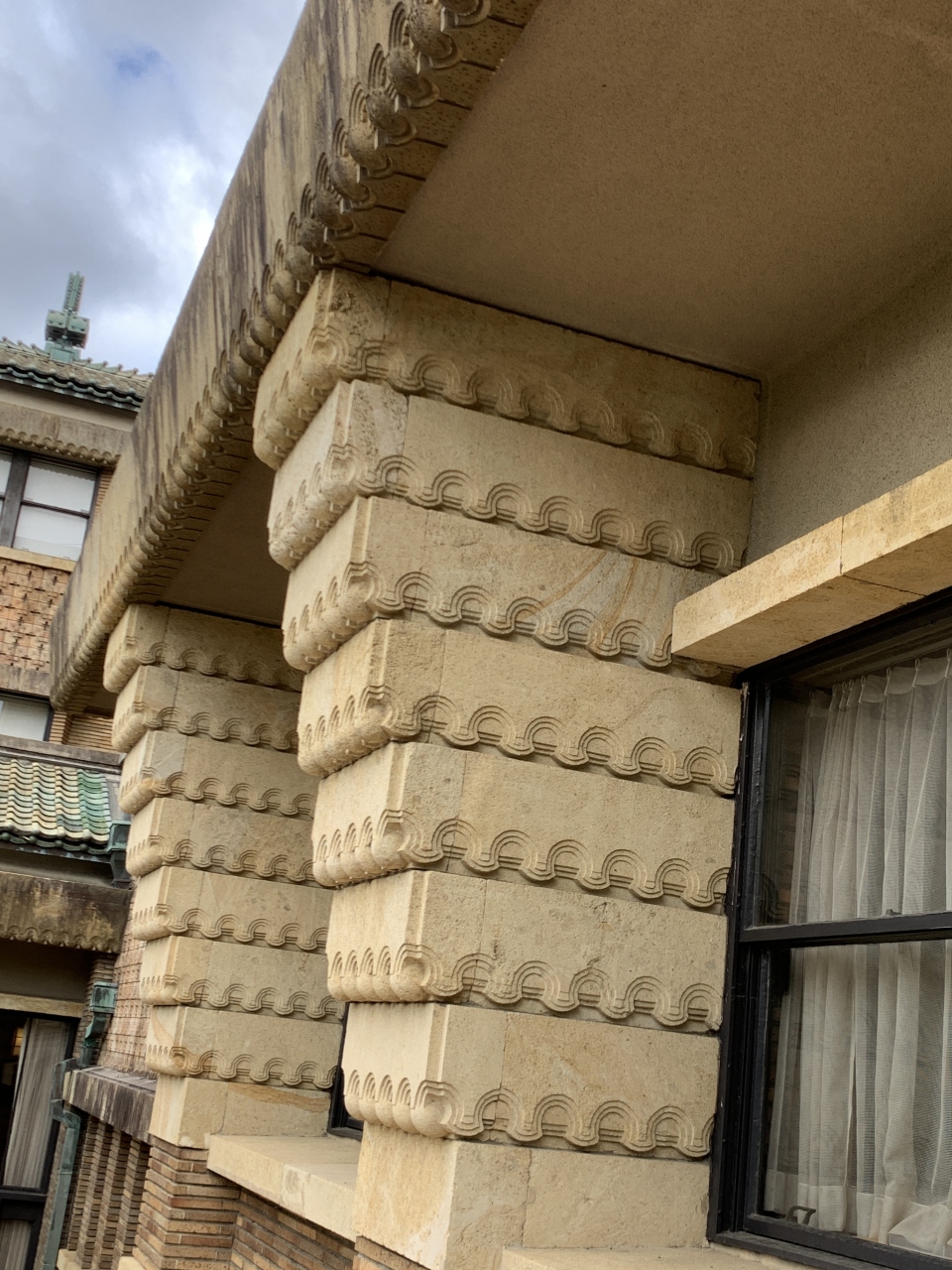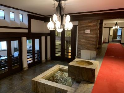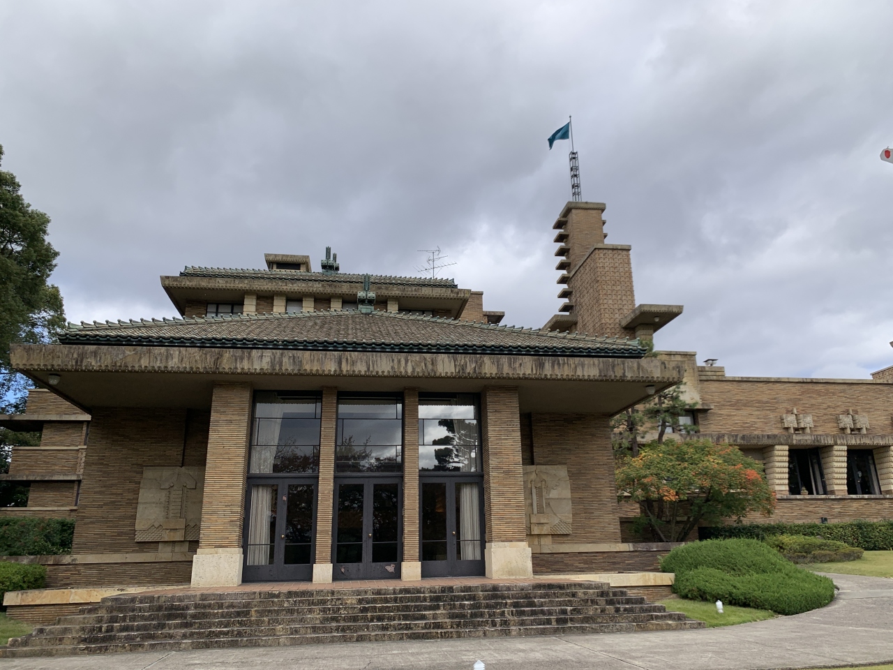 甲子園会館は昭和5年に甲子園ホテルとして開業し、その後、武庫川学院の教育施設となり、武庫川大学のキャンパスの中にあります。建築家ライトの愛弟子の遠藤新の設計で、アールデコ様式、打出の小槌のレリーフが至ところにあります。また、水玉模様の彫刻も多く、防火を意識したものだそうです。市松模様の和天井など和の様式も採り入れ、西洋風のものと微妙なバランスがあります。当時の政界の要人や経済人、文化人など多くの著名人が宿泊、利用しているホテルです。娯楽ルームでは山本五十六がトランプゲームを楽しんだという逸話も残っています。広く、美しい庭園も紅葉が始まっていて、建物ともとても調和していました。- 旅行時期