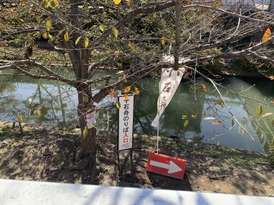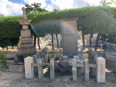 お墓には公園の中を通っていきました。立ち入り禁止の鎖があり、近くには立ち寄れませんでした。