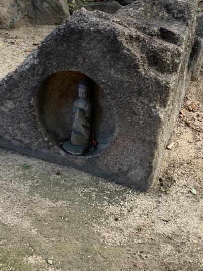 岩屋寺の境内には大石内蔵助とその家族が近くの親戚を頼って住んでいた場所がありました。今は石碑が建っています。その家で使われた木材は境内の茶室に使われ、また大石内蔵助お手植えといわれる梅の樹もありました。討ち入り後に寺坂吉右衛門が持ち帰ったといわれる大石内蔵助の遺髪も納められている遺髪塚もあります。