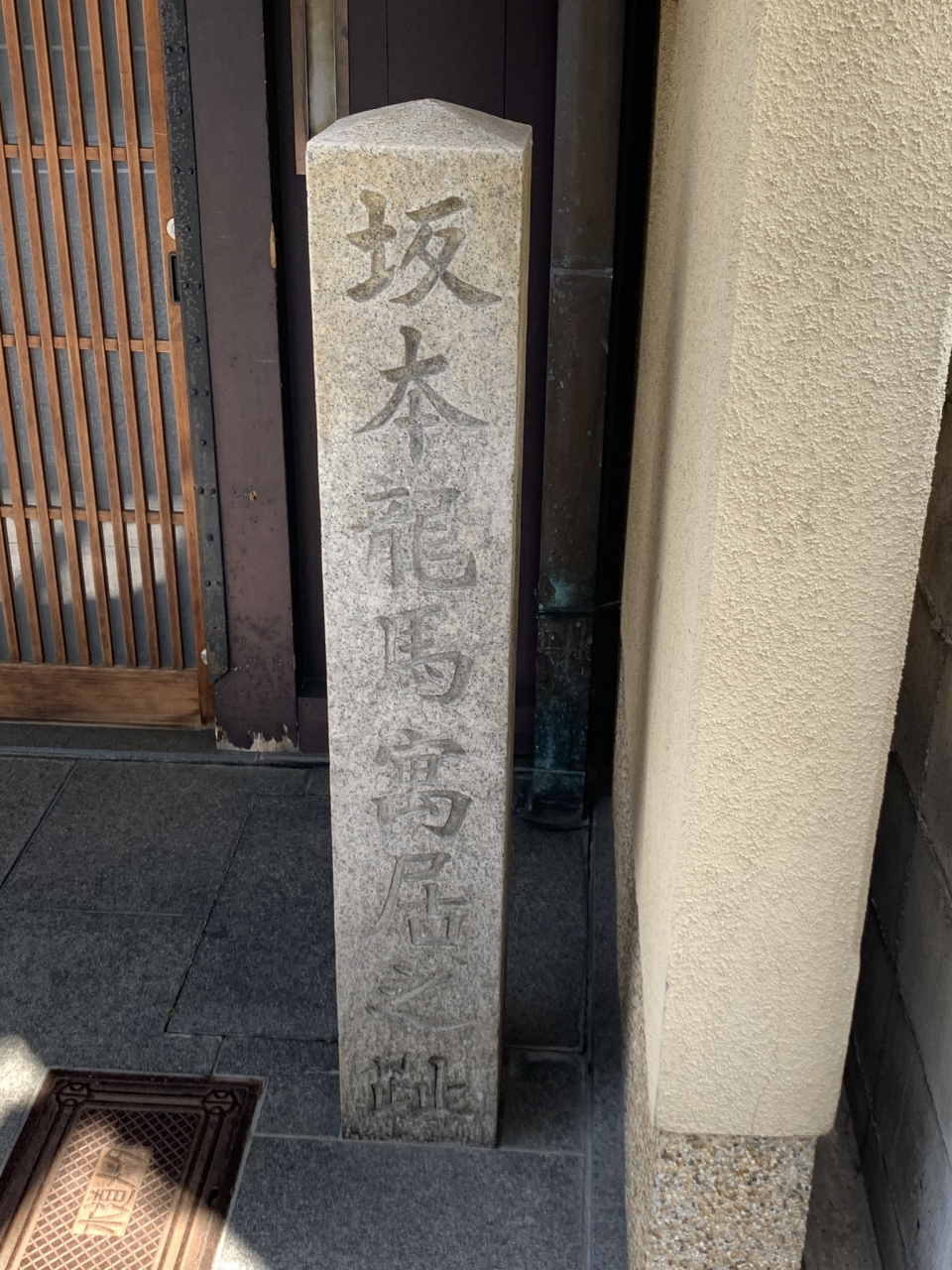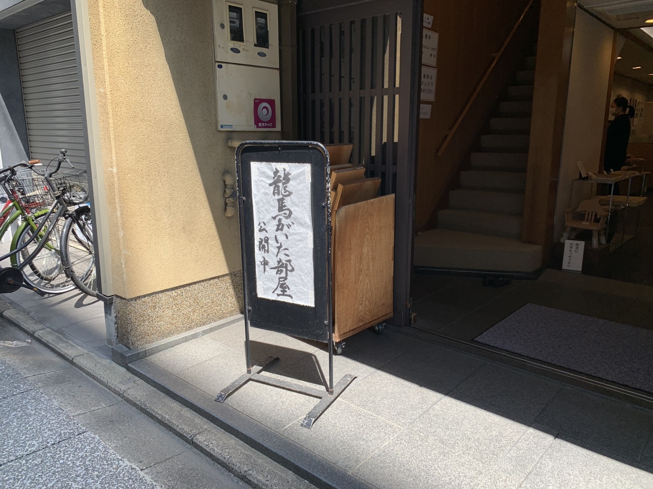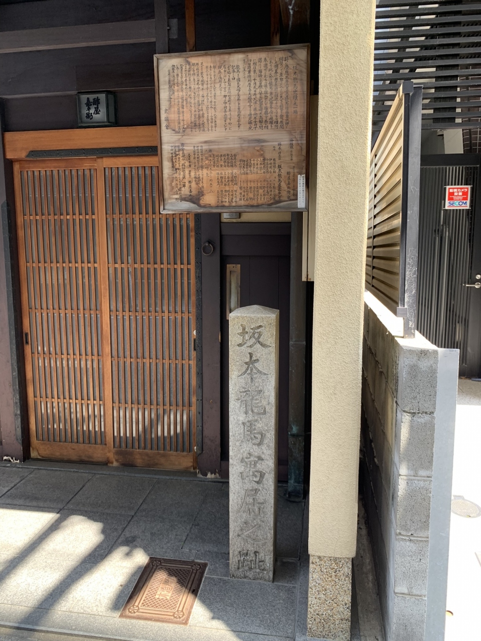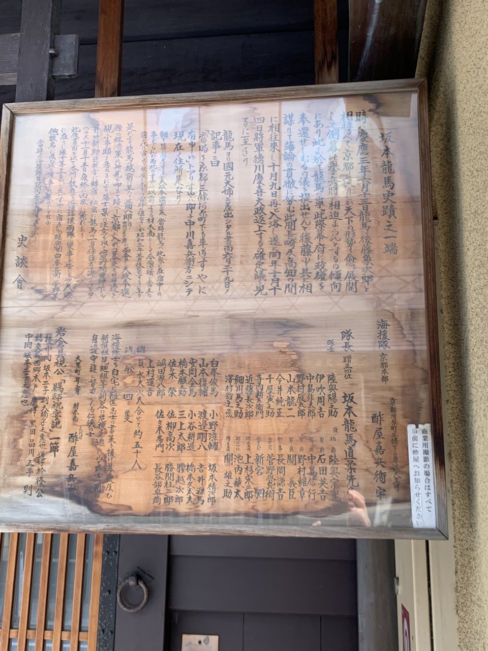 坂本龍馬の寓居跡を探していましたら、こちらの建物にたどり着きました。今も材木商の商いをされているお店の二階では坂本龍馬に関しての展示が行われていました。