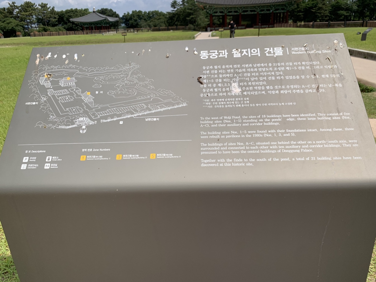 もともとは、月池と呼ばれる人工の池と新羅王宮の別宮の東宮がありました。674年に新羅の統一を記念して文武王が造ったところで、現在は三つの建物が復元されています。