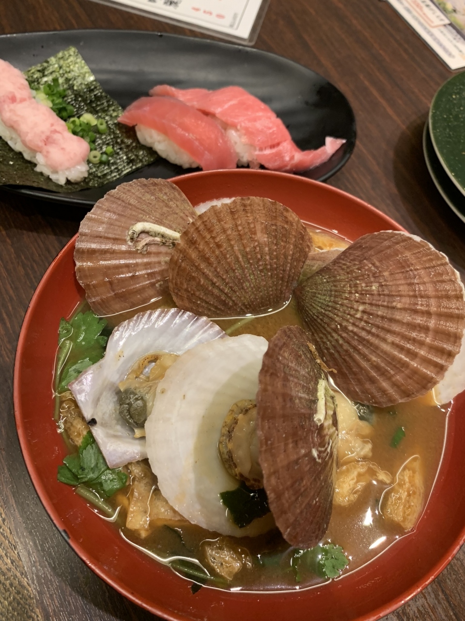 いろんな創作のお寿司も多くて、あれこれと食べたくなります。ネタも新鮮です。貝のお味噌汁も新鮮な貝がどっさり入っていて食べ応えありました。- 旅行時期