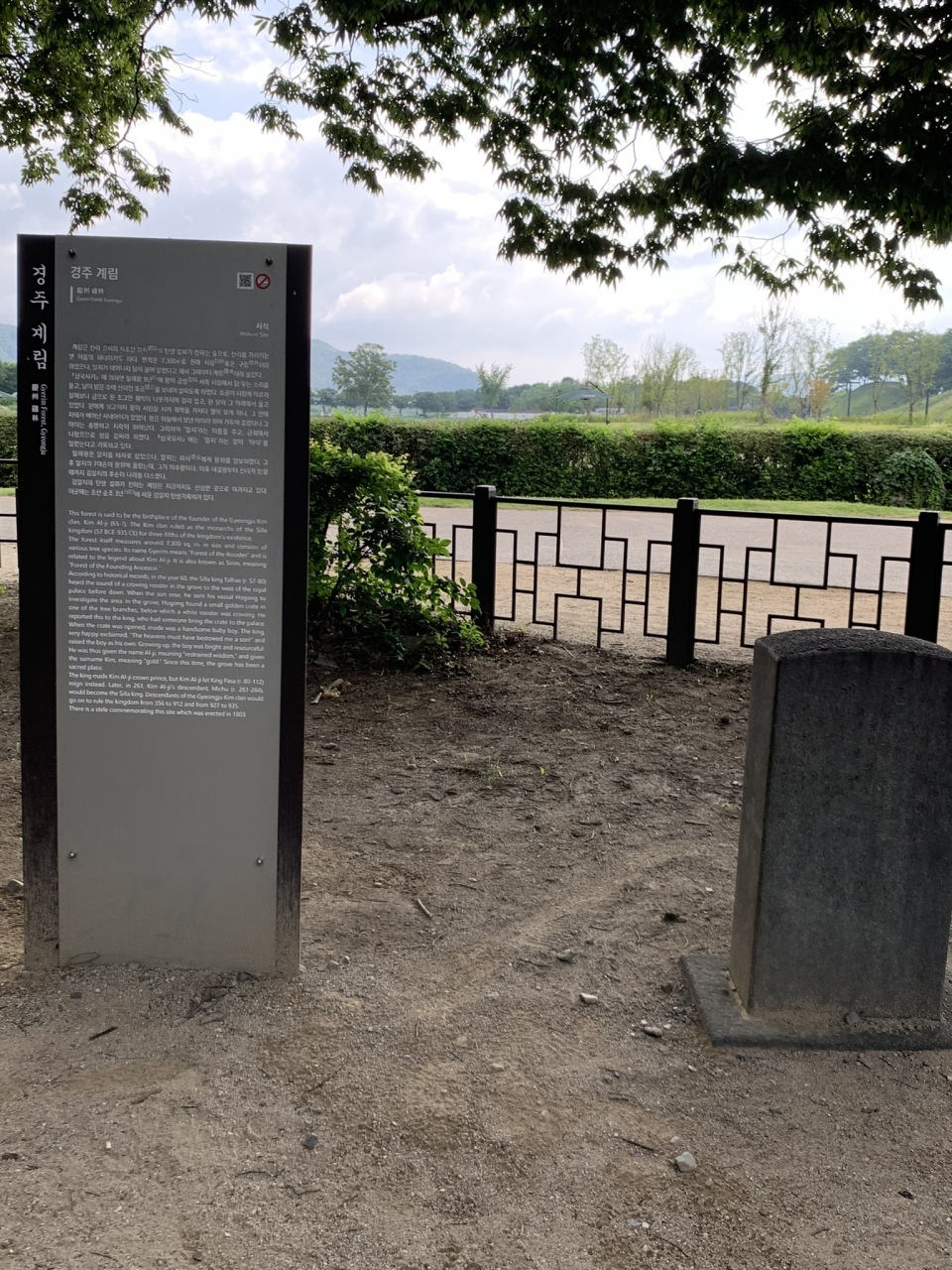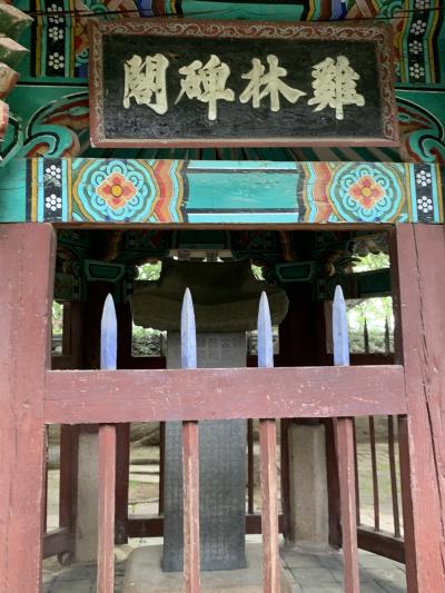 世界文化遺産の慶州歴史地区にあります。林が生い茂っている中に静かにたたずむ石碑が大切に保存されていました。1803年に鶏林の伝説を石碑に刻んだものだそうです。