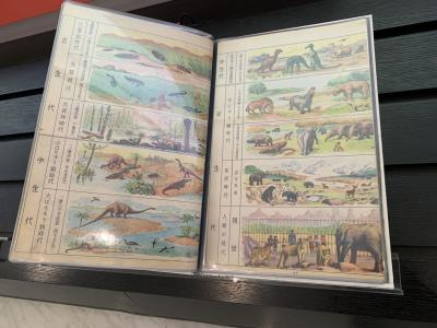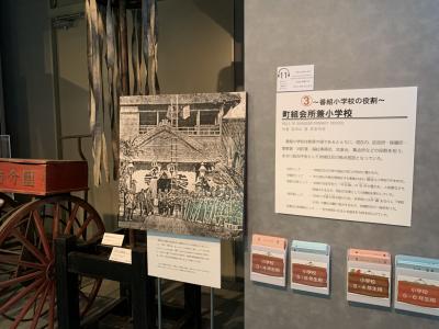 当時、番組小学校は住民の拠点施設としての役割も持っていたことがわかります。時代によって変わる教科書も展示されており、手にとってみることもできました。また、学校が所蔵してきた美術工芸品も多く展示されています。また、子供がテーマになった絵も展示されていました。給食のコーナーもあり、懐かしくなりました。現在、建物は、修復中でした。- 旅行時期