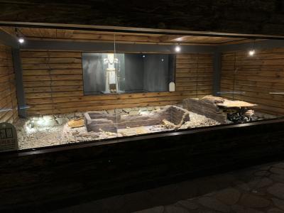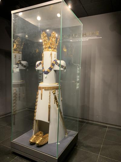 5世紀から6世紀に築造されたといわれる天馬塚の被葬者は明らかではありませんが、その副葬品は金を使ったものが多く、被葬者の権力が示されています。金の冠や金と銅で造られた靴、そのほか金の飾りがとても豪華でした。耳飾りなどの装飾も着用されたまま出土したそうですが、その積石木槨墳という独特の円墳の内部が見学できます。