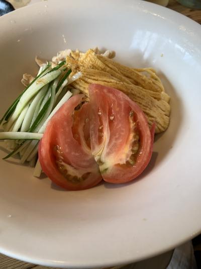 9月も末ですが、日中は夏のような暑さ。今年最後の冷麺を食べようと行きました。モチモチの麺、具材も器も冷たく、全てが冷たく、美味しい冷麺でした。夫はゴマ味噌味のラーメンでしたが、少し辛味をプラス、こちらも美味しい拉麺でした。