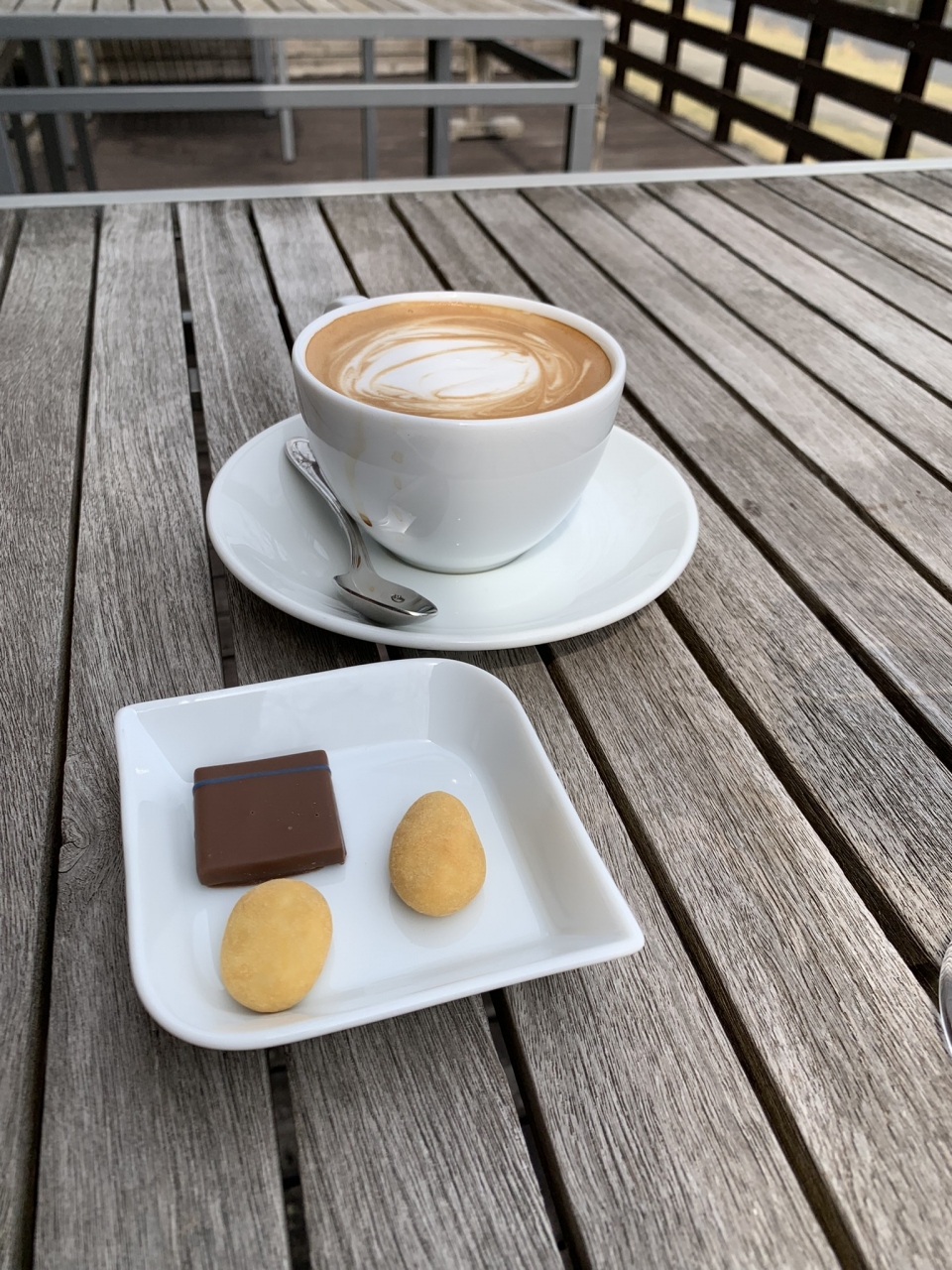 鴨川を眺めながら、とても心地よい時間も過ごせました。ケーキも繊細でチョコレートの味が濃厚でした。コーヒーにも小さなチョコがついています。また、店内でチョコレートやケーキのテイクアウトもできます。- 旅行時期