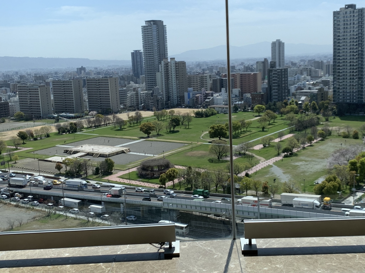 近くの大阪歴史博物館の10階には大極殿を実物大にした建物が再現されています。そのスケールの大きさもわかりますが、当時の官吏や女官たちも復元されており、とてもリアルな雰囲気が伝わってきました。10階からは難波宮跡が見下ろすことができます。そのほかにも全体的な建物の模型や資料も多く展示されて、前もって知識がインプットされました。
